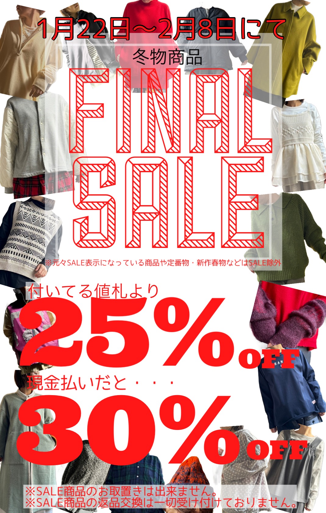 冬物SALE!!25%OFF 現金払いだと・・・30%OFF‼
