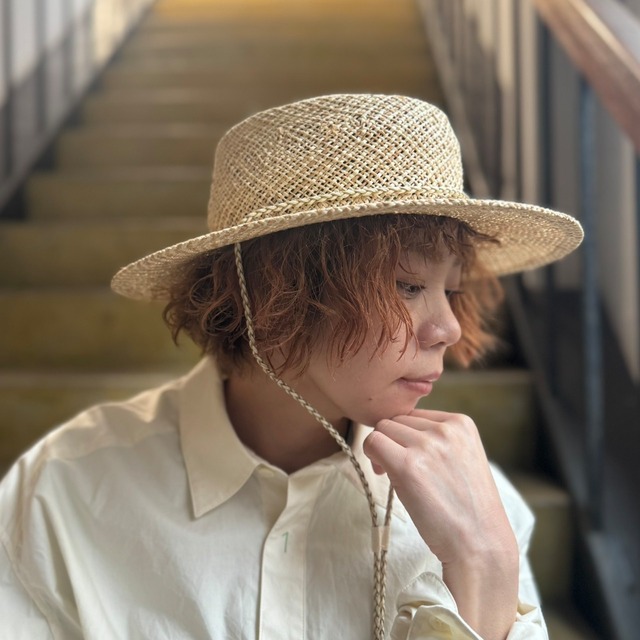 SUBLIMEよりリゾートハット、登場です。 ...................................................... 夏だ!バカンスだ!テンションの上がる季節がやってきます♪ オシャレに紫外線予防を兼ねたオシャレハットです。 シンプルでいてユニセックスで被れる メンズライクなシンプルな麦わらハットとなっています。 風で飛ばないようフリンジ付きな紐も良い雰囲気を醸し出して、 コーデアクセントに良いハットとなっています。 これぞ、夏の必需品♪ 品番:SB261-0414 カラー:ナチュラル(PRAFFIA×PAPER) サイズ:ONESIZE 高さ7.5cm つば長さ8cm 頭まわり56.5cm 着用モデル:154cm 本体:天然草木(ラフィア) 副資材:分類外繊維(紙)100% ヒモ:合成皮革 中国製
