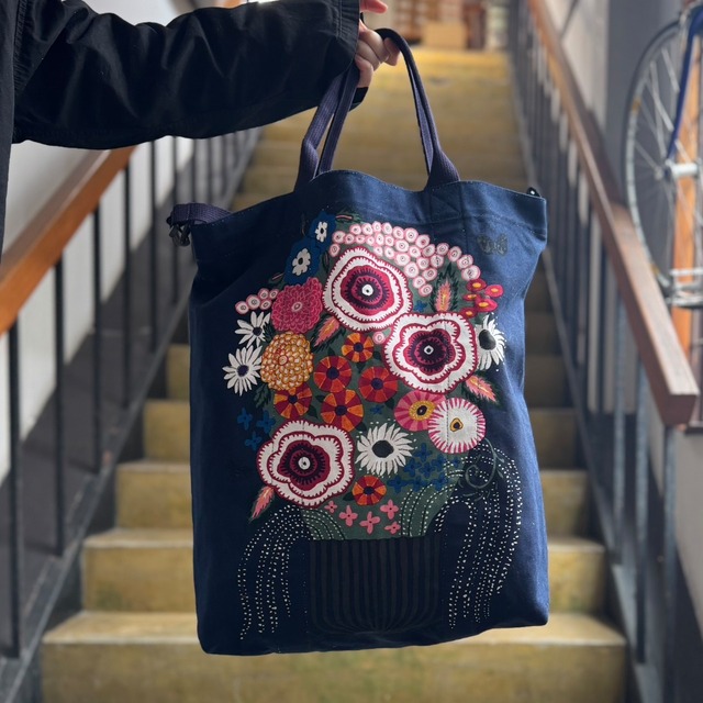 BOHEMIANS BOUQUET LONG TOTEが入荷しました! ...................................................... 柄の存在感が際立つ、縦長サイズのトートバッグがこの春新しく登場です! 手持ちハンドルとショルダーストラップが付いた2way仕様のバッグとなっています。 ショルダー部分は長さの調節ができ、取り外し可能なタイプです。 用途によって使い分け可能な便利なバッグに仕上がっております。 内側には小物入れ用のポッケ付きです。 8号キャンバス生地でしっかりとした素材を使用しています。 ブーケをモチーフとした大きめな柄をあしらっており あたたかさとモダンな雰囲気が調和した存在感のある柄となっています。 品番:BB-260-01 カラー:ネイビー サイズ:ONESIZE 高さ50cm 横幅46cm マチ13cm ハンドル高さ17cm ショルダーストラップ56〜106cm 本体:綿100% 持ち手(ストラップ部分):アクリル100% 日本製