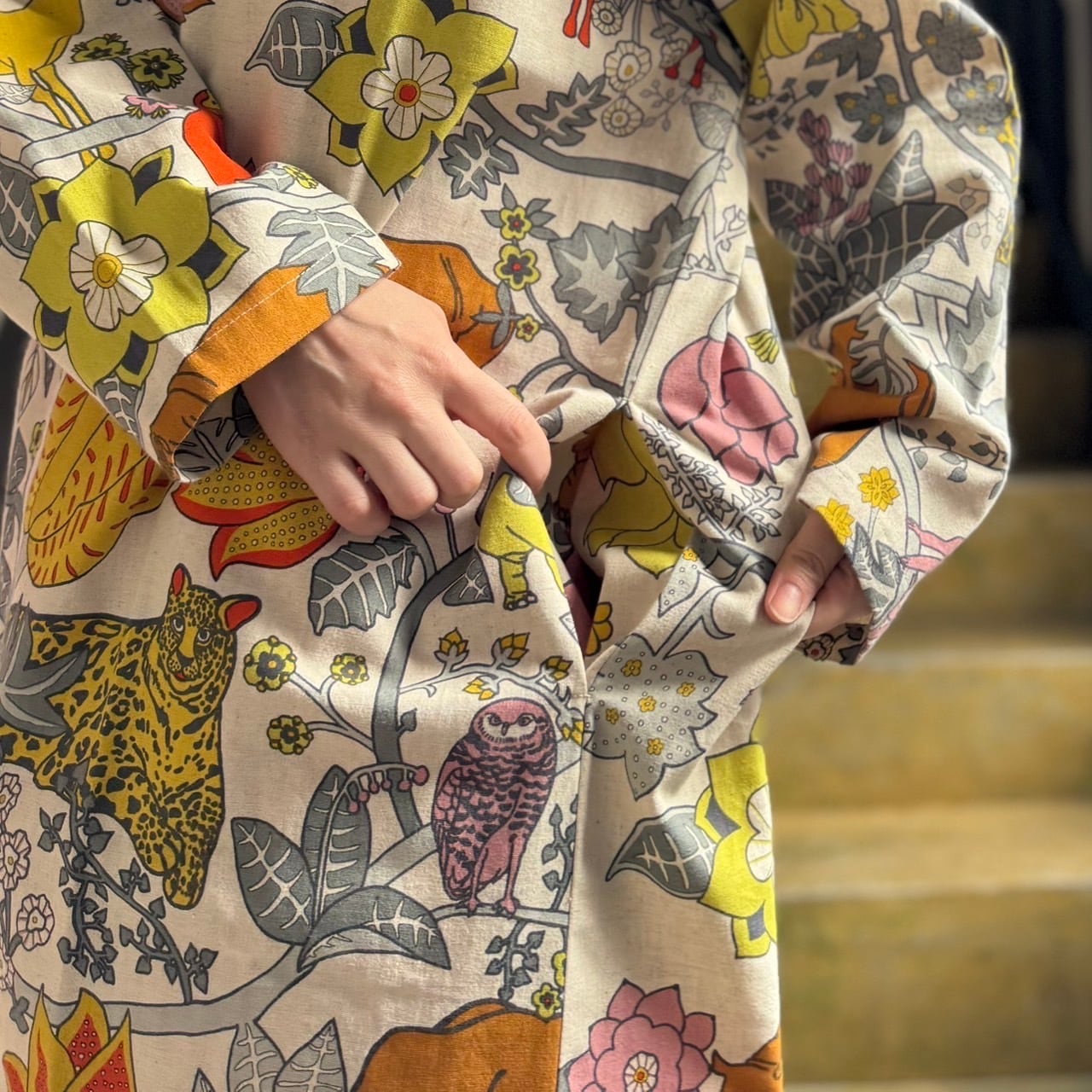 定番的人気柄である《ジャングル》の新色物のVネックワンピースです。