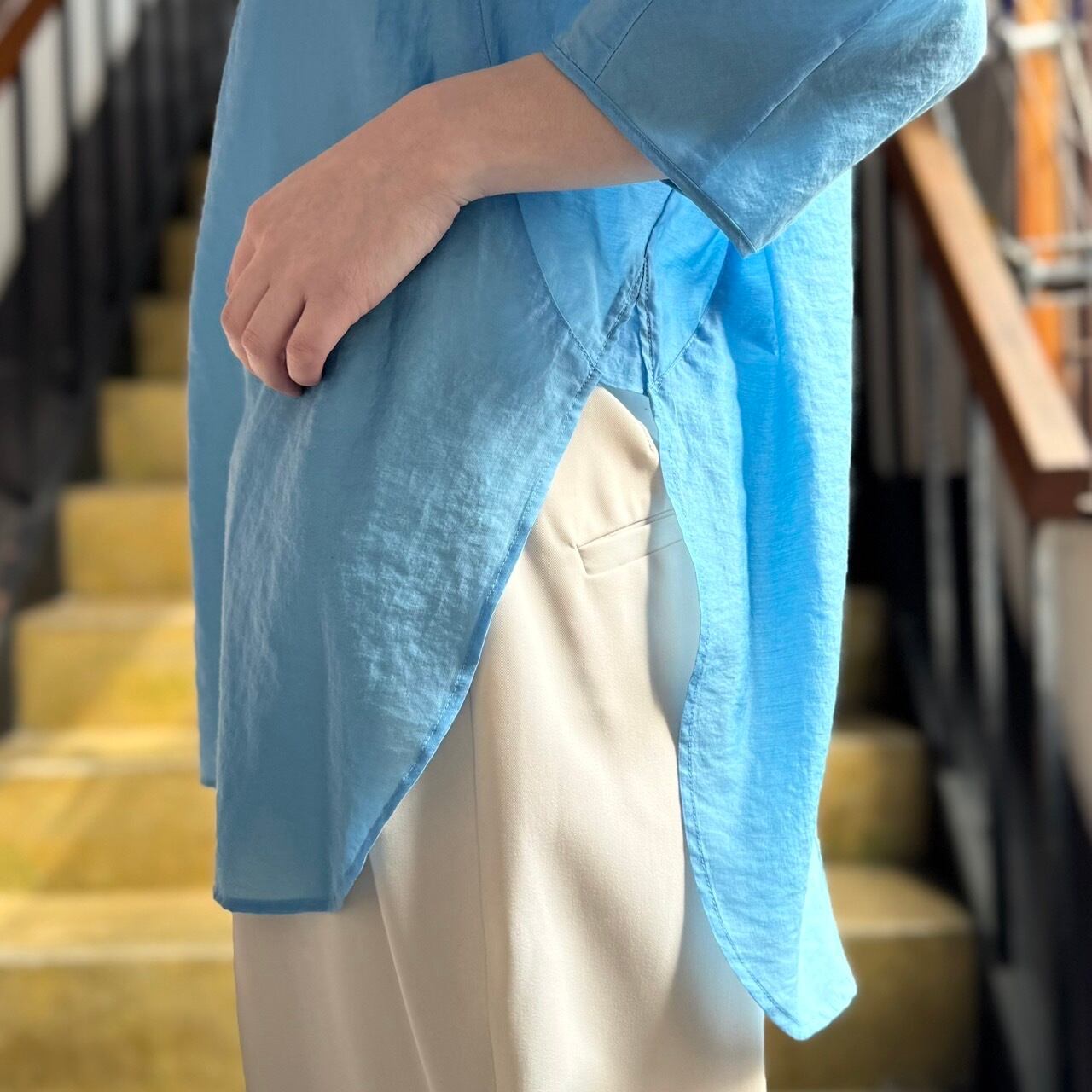 程よく透け感のある素材で軽めでサラッと着てもらえるブラウスになっています。