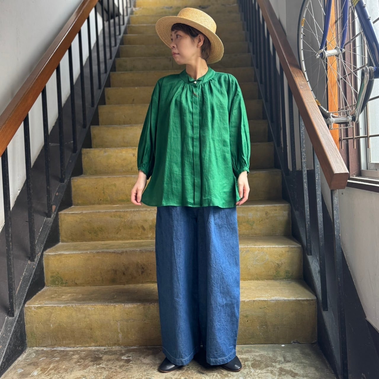 春夏らしいサラッと素材のウィングカラーのリネンシャツ。