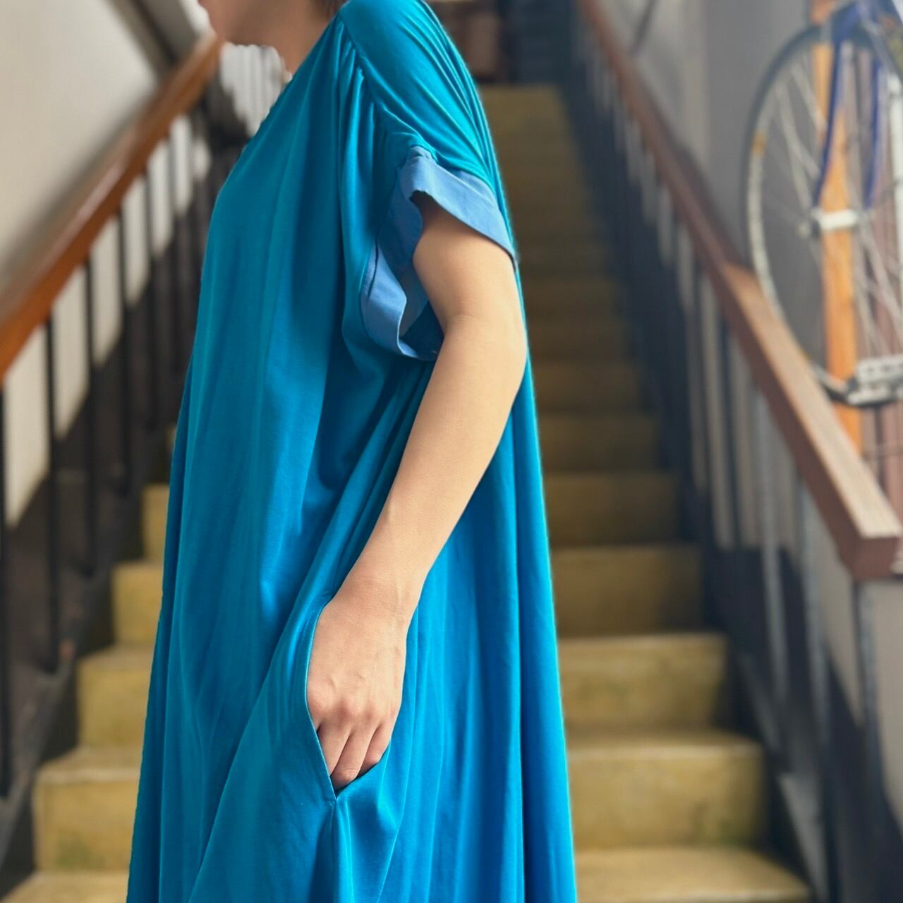 より涼しく着ていられるようなふわっと風の通る軽めな素材感のワンピースです。