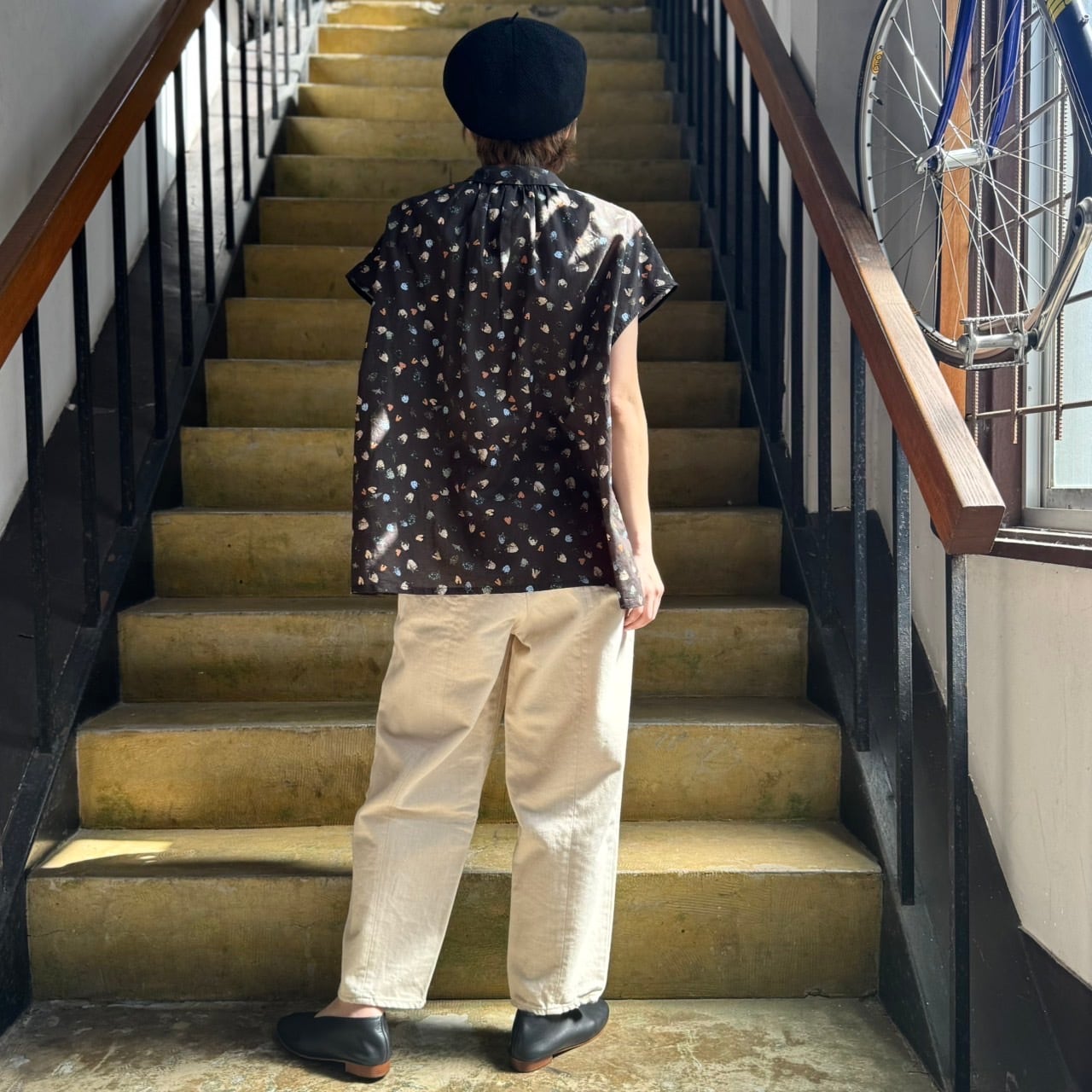 たっぷりギャザーをシャツ襟で引き締めたデザインに✨