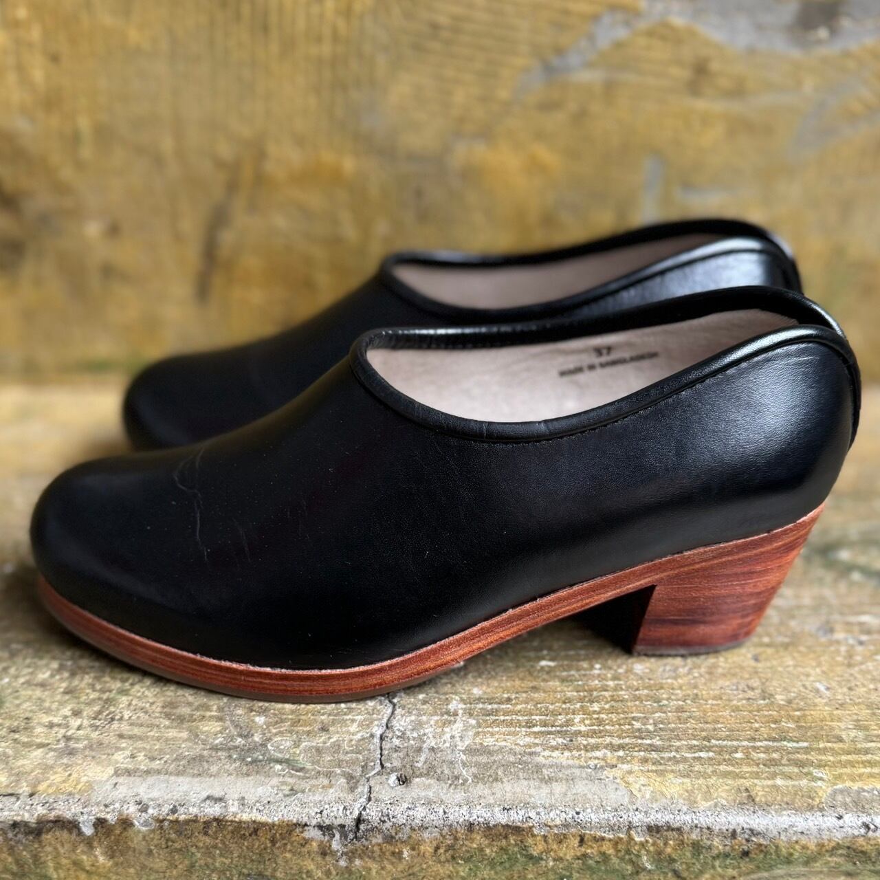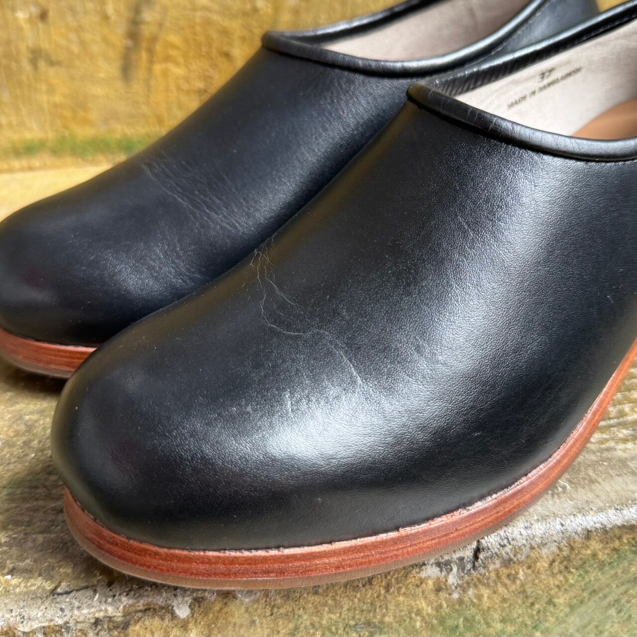 コロンとした丸みのあるフォルムが印象的なサボシューズです。