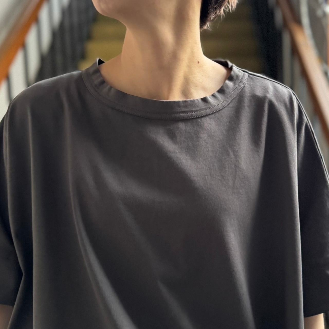 少し肉厚さもありますが、しっとりとした感触のあるカットソー生地を使用しています。