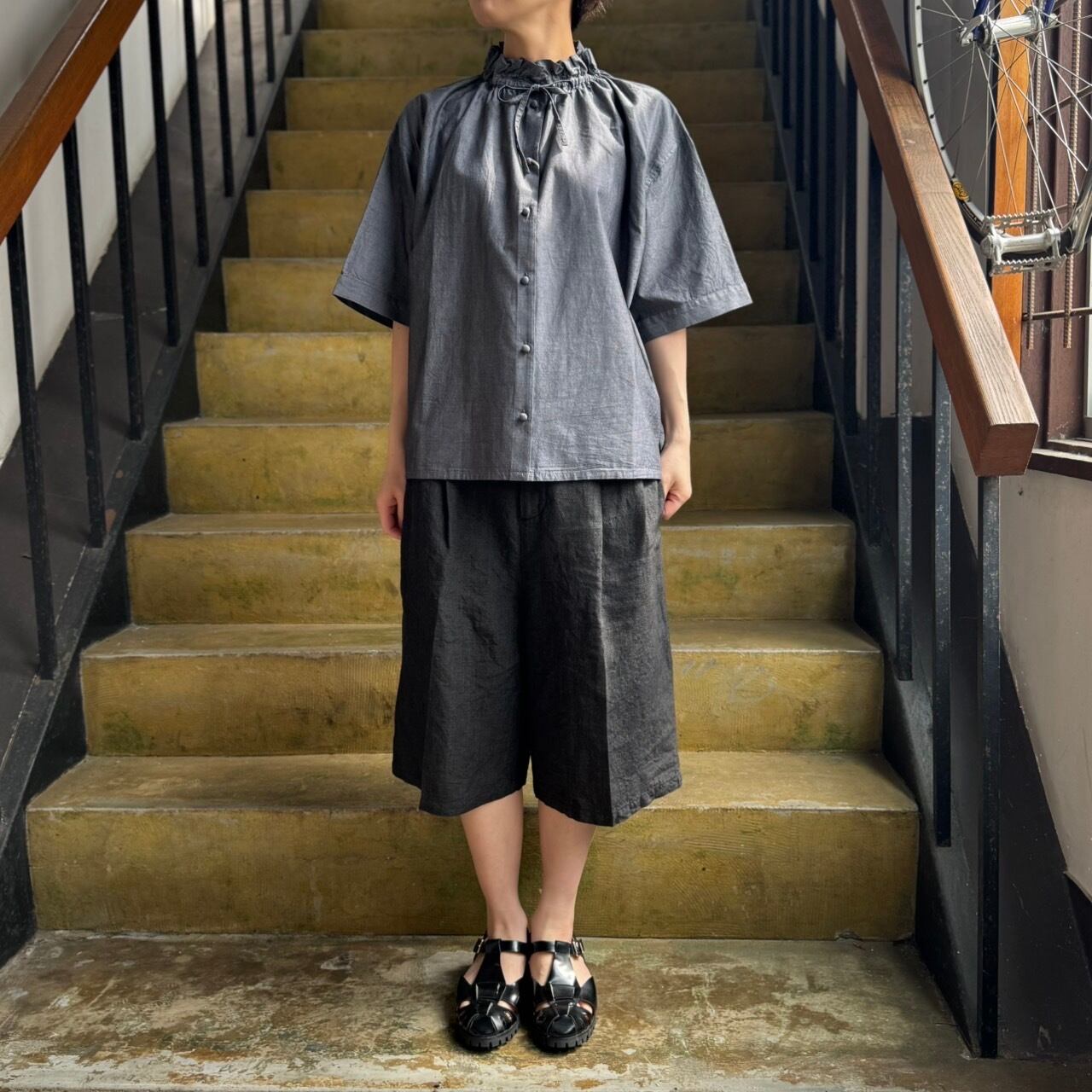 落ち着いたチャコールグレーは暑い時期にぴったりな軽やかで