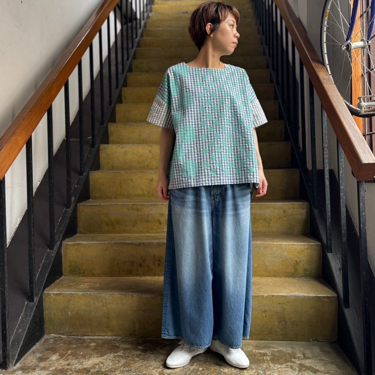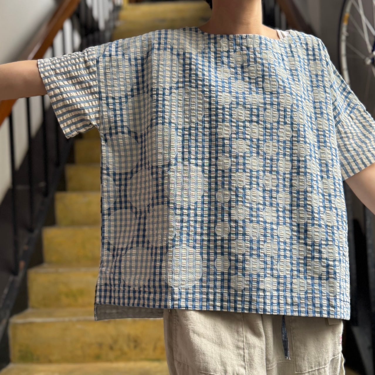 サッカー生地を織り合わせた軽やかでいめ楽しくなれる夏の服としてご提案です♪