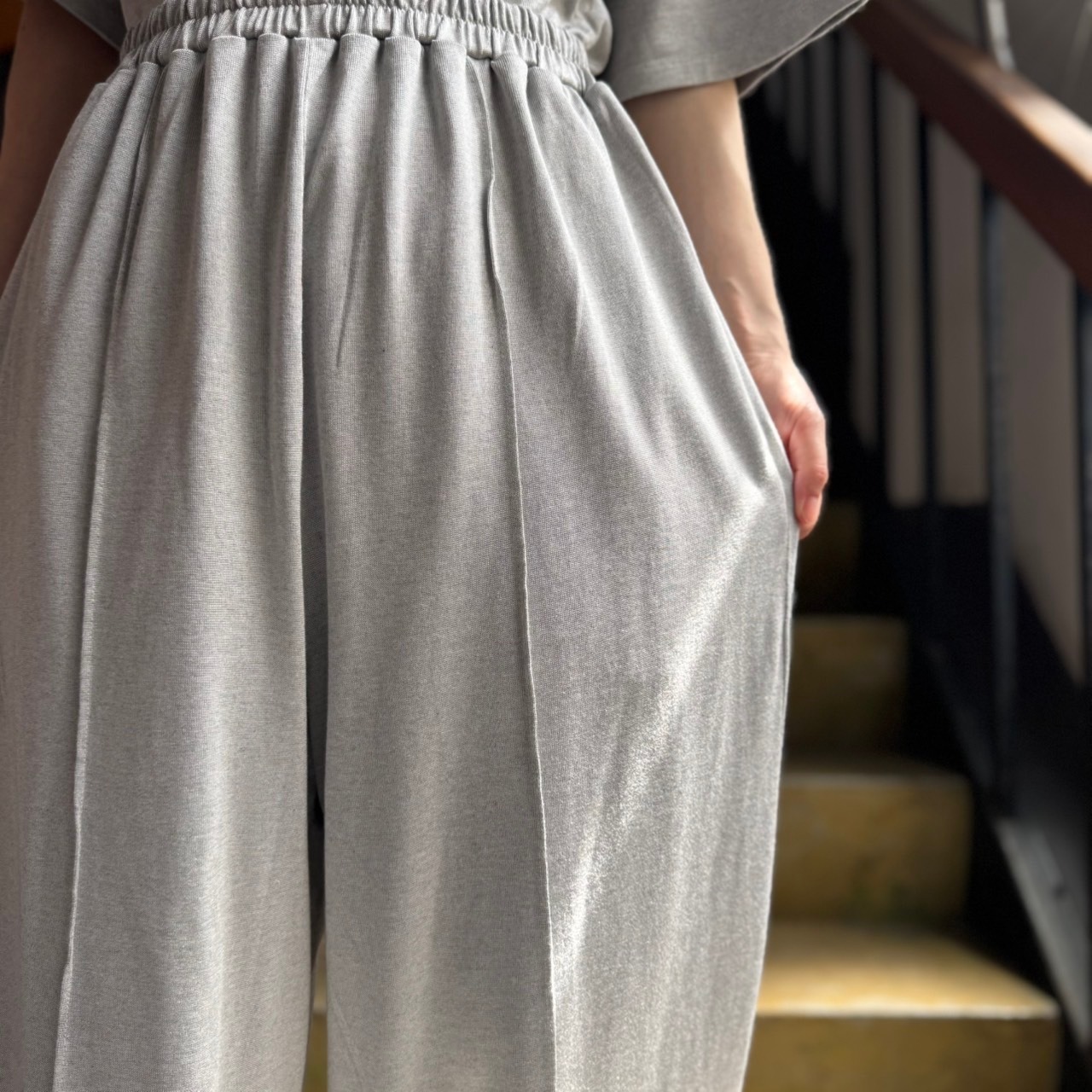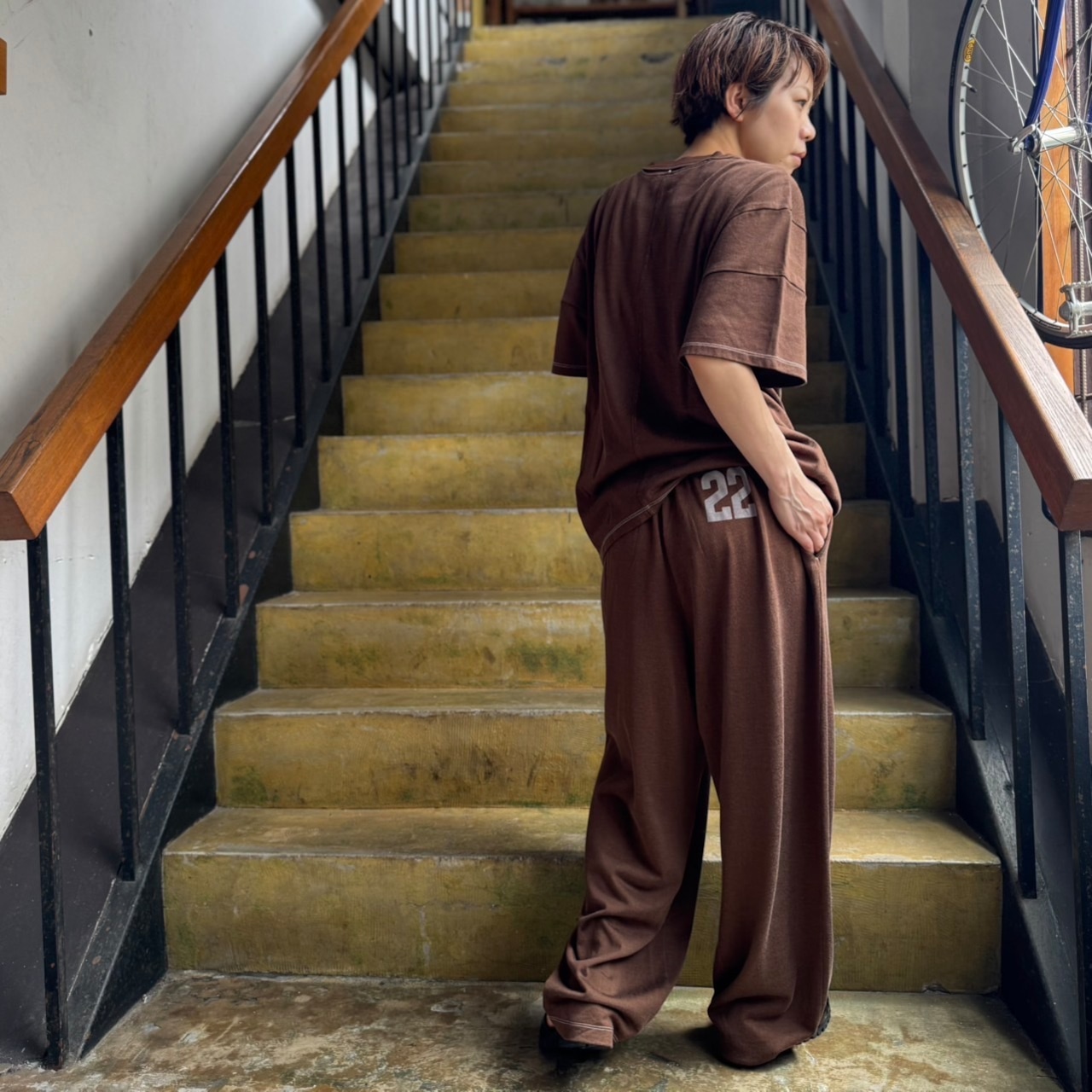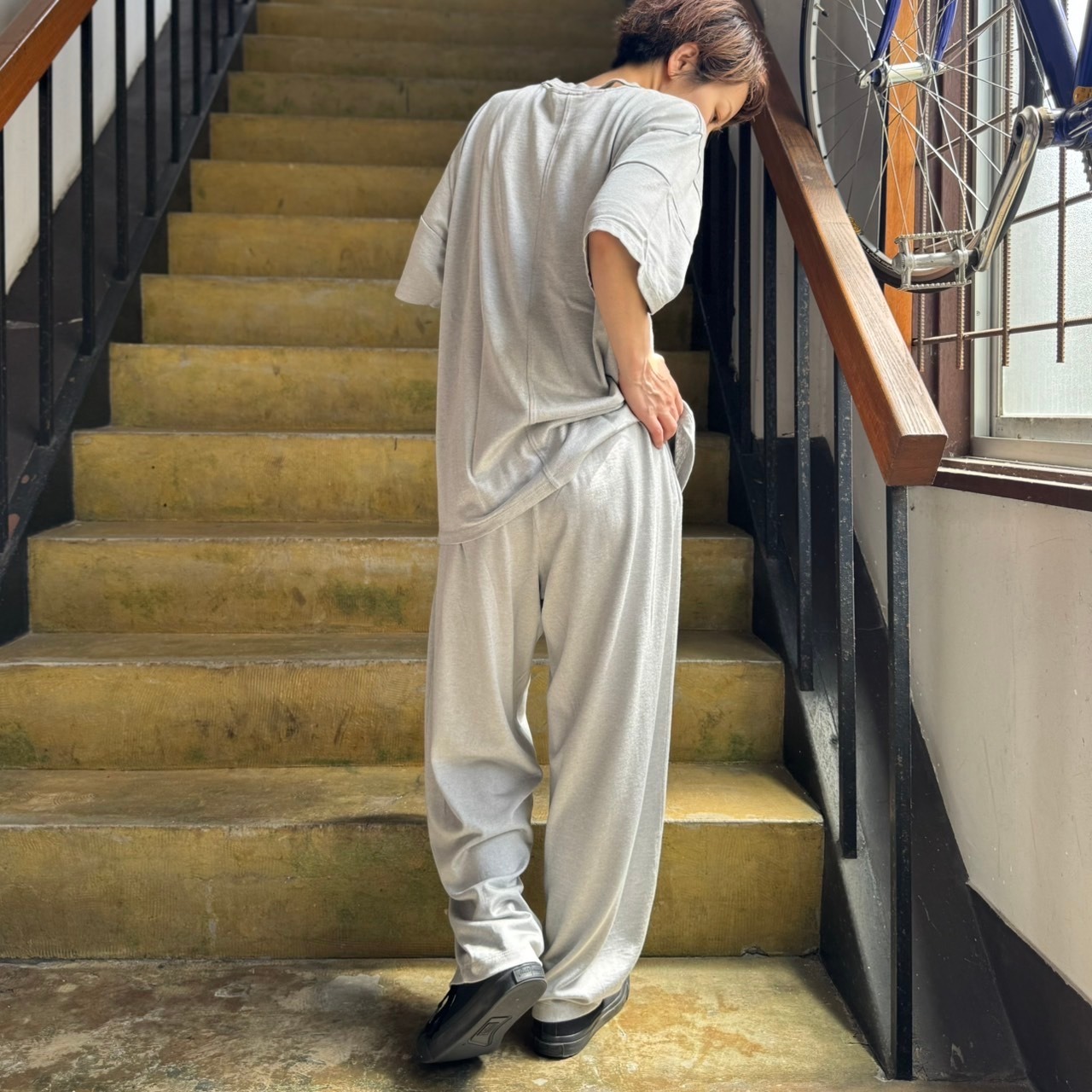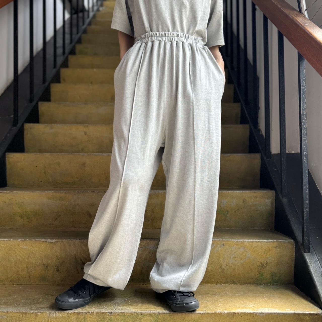 裾に程よいたまりができるようなシルエットに作ってあるトラックパンツ仕様のパンツは、