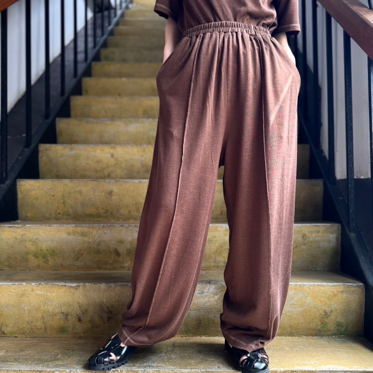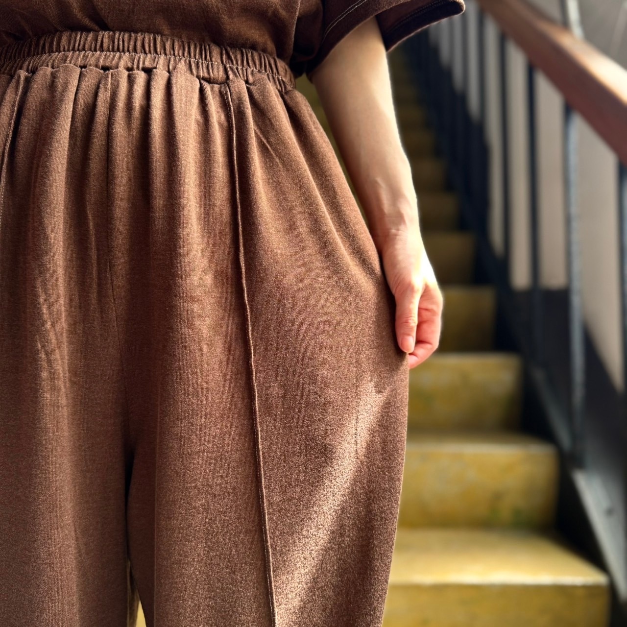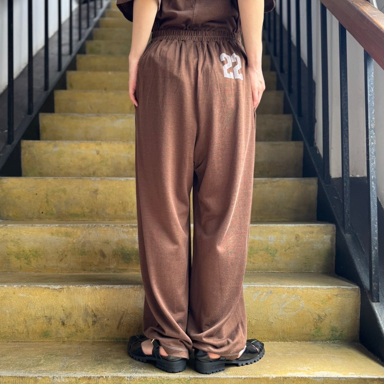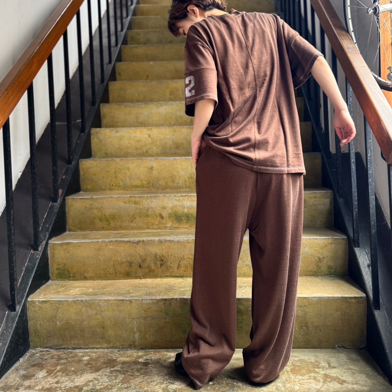 裾に程よいたまりができるようなシルエットに作ってあるトラックパンツ仕様のパンツは、