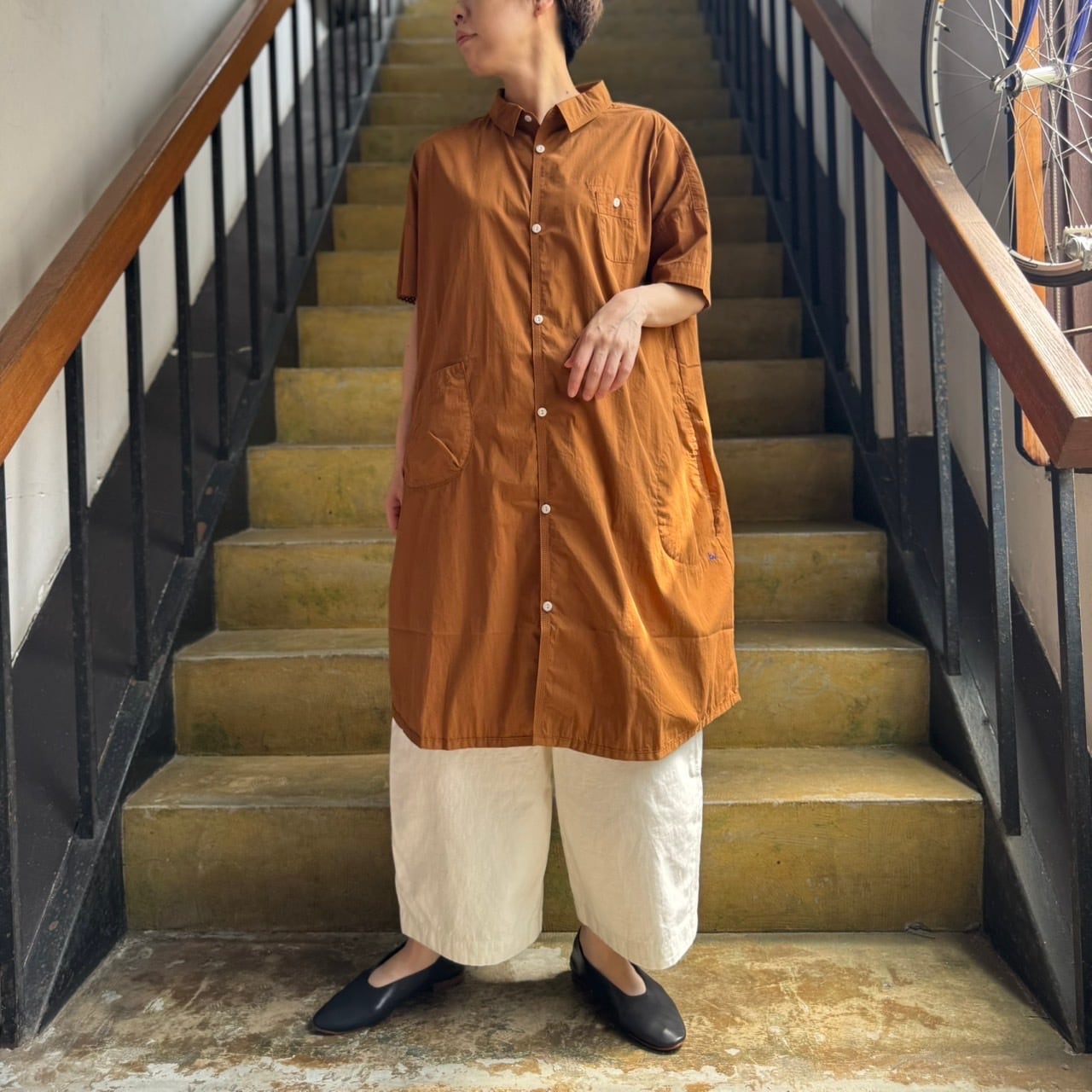 非常に軽いタイプライター生地による前開きシャツワンピが入荷しました!