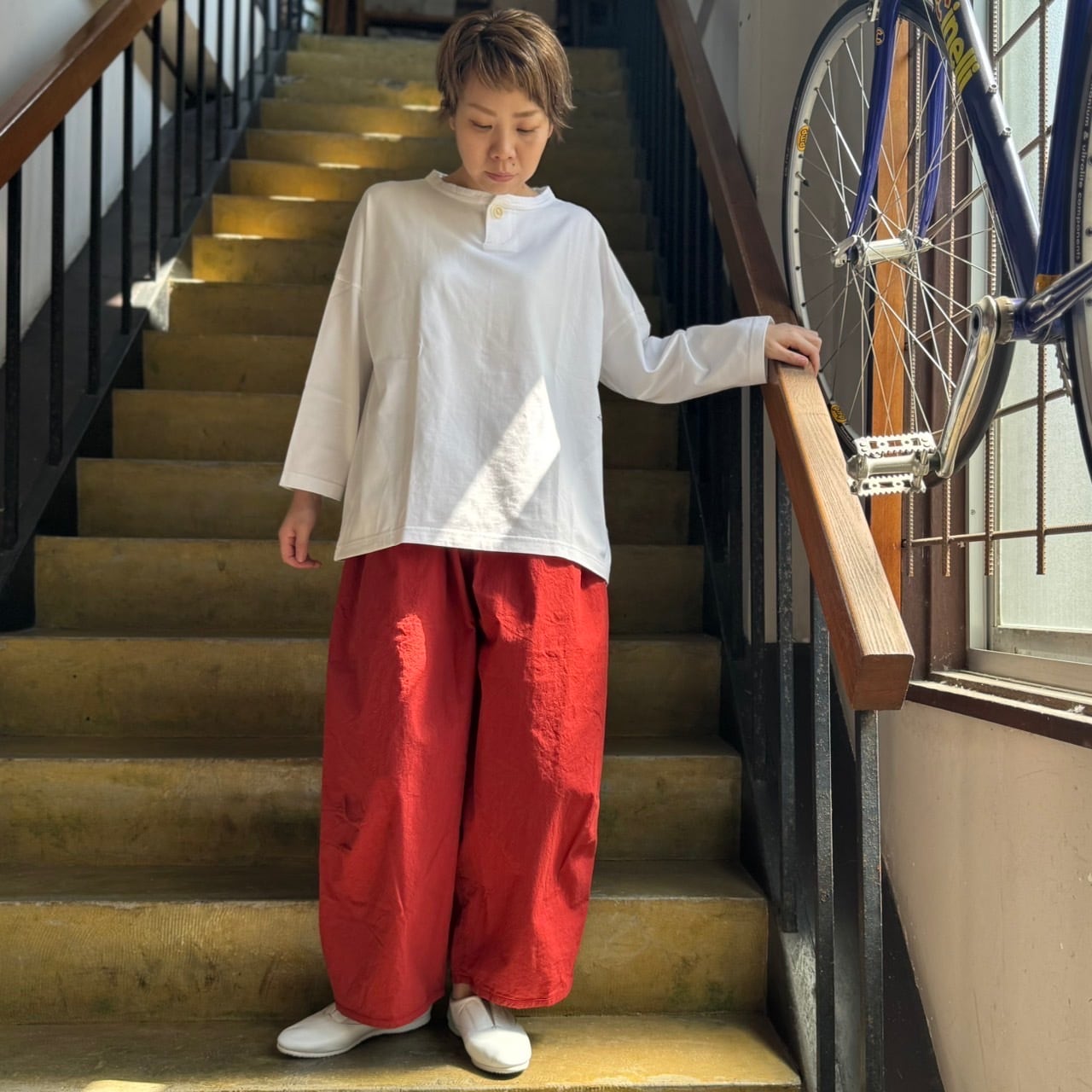 小柄さんにはこのゆったりさと丈のバランスが一番しっくりくるパンツです!