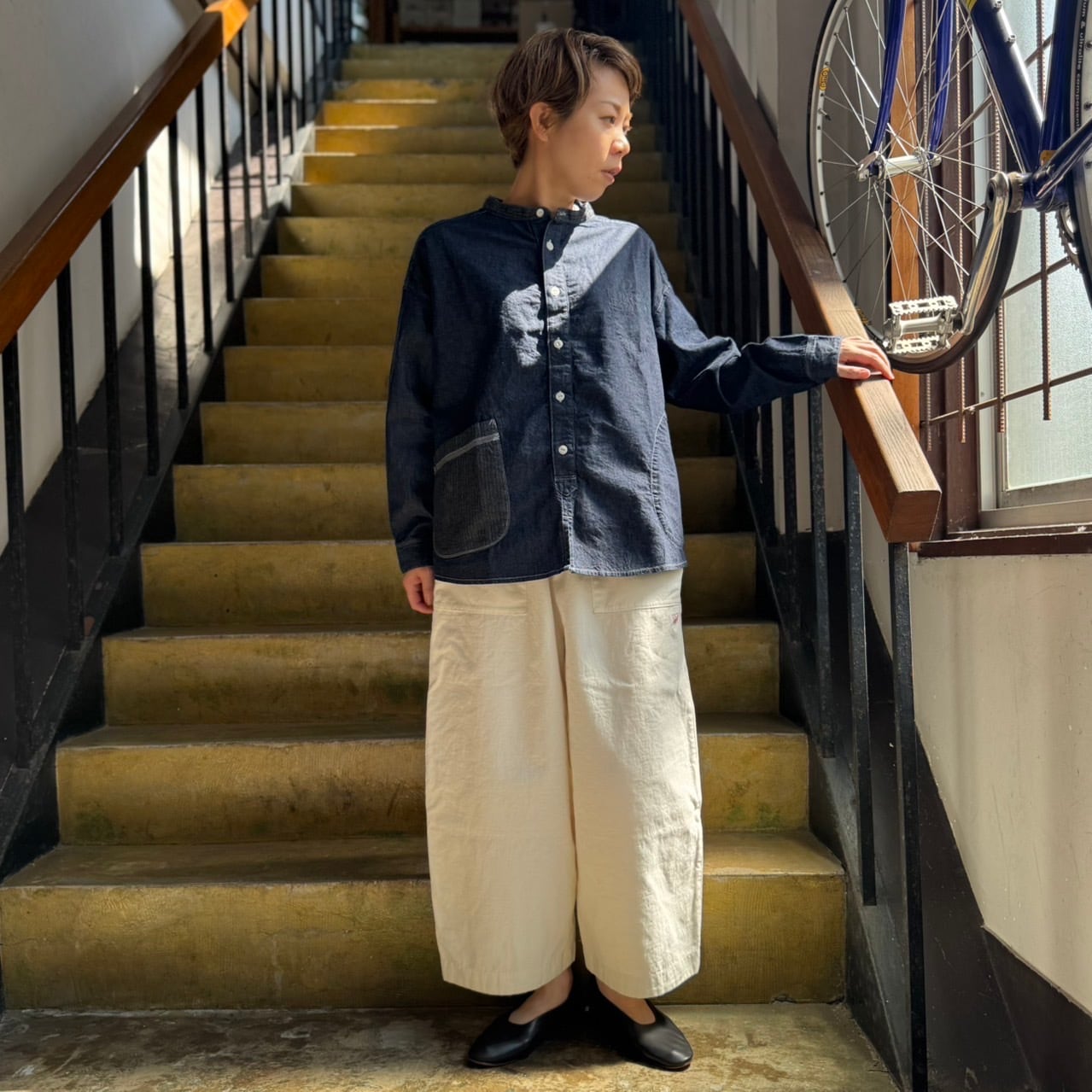快晴堂 - HAYATE・デュアルシーズンデニム/スタンド衿プルオーバーシャツ