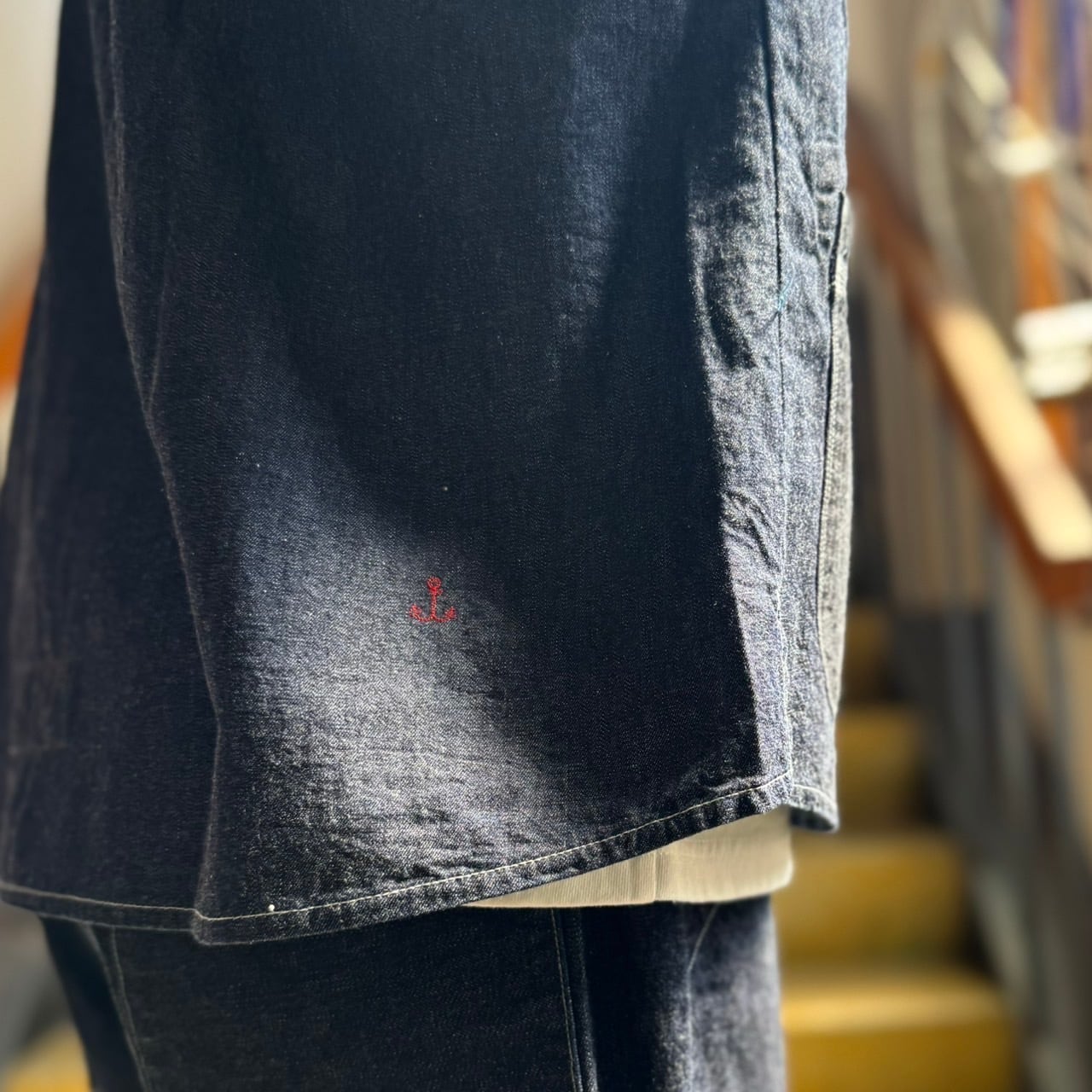 前開きのようでそうでない、プルオーバータイプのデニムシャツとなっています!