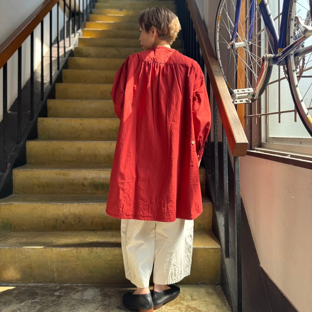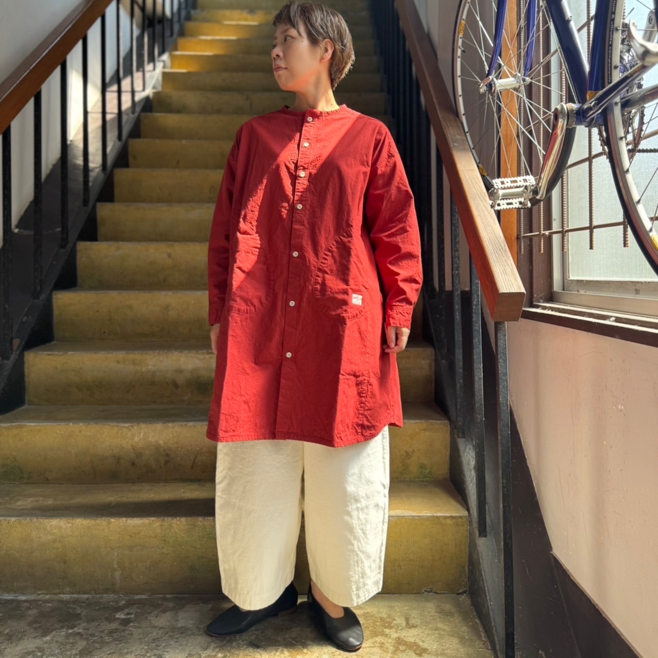 快晴堂 - Girl’s・ヴィンテージ馬布/スタンド衿チュニック(茜色)