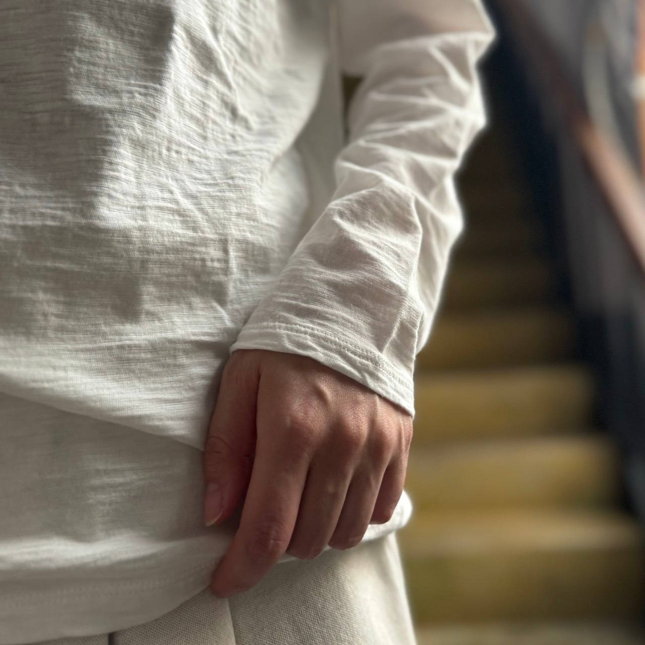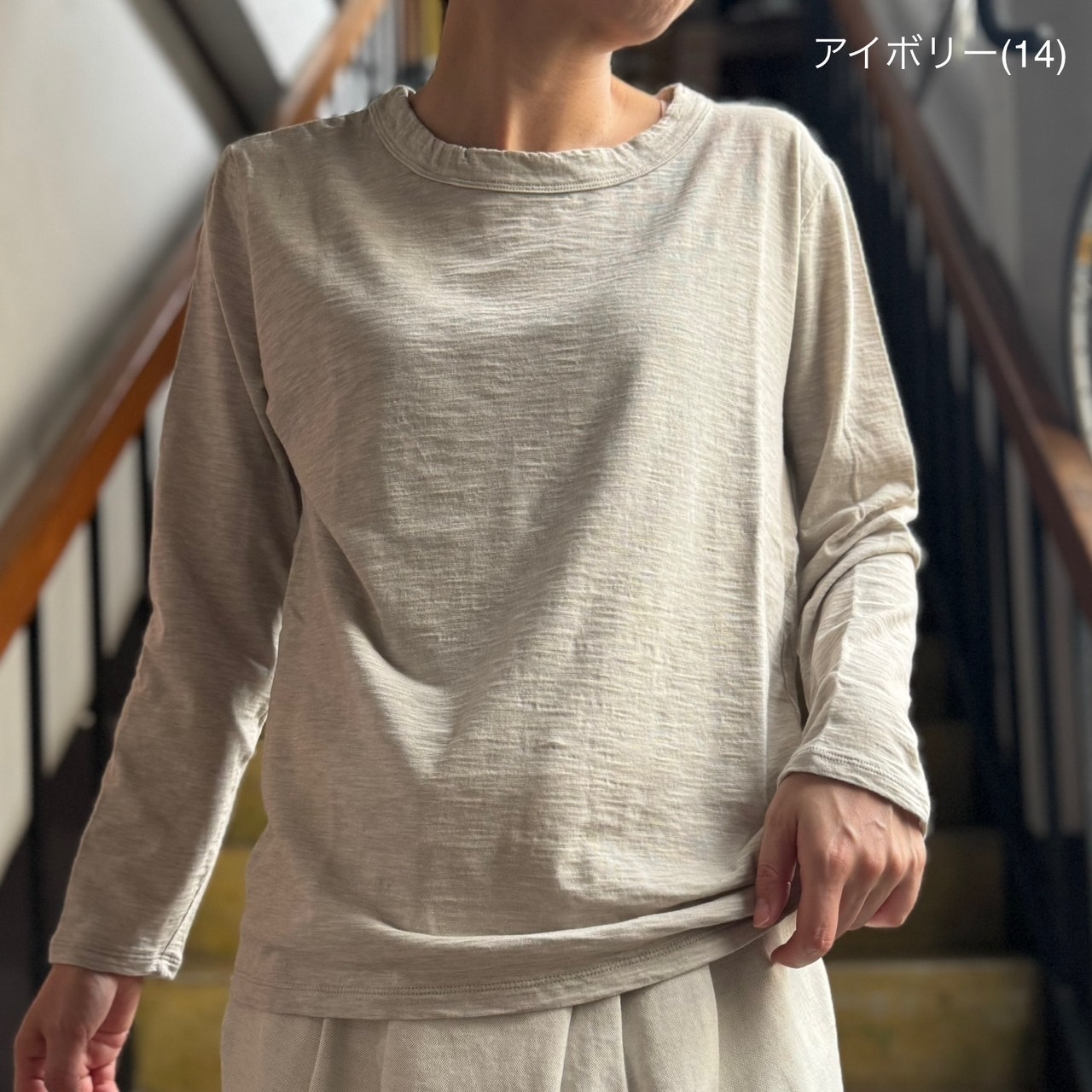 秋冬のインナー着として着まわせるすっきりとしたサイジングで作られています。