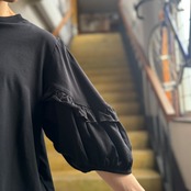 袖がブラウスのような雰囲気になっており、断ち切り仕立てのフリルで