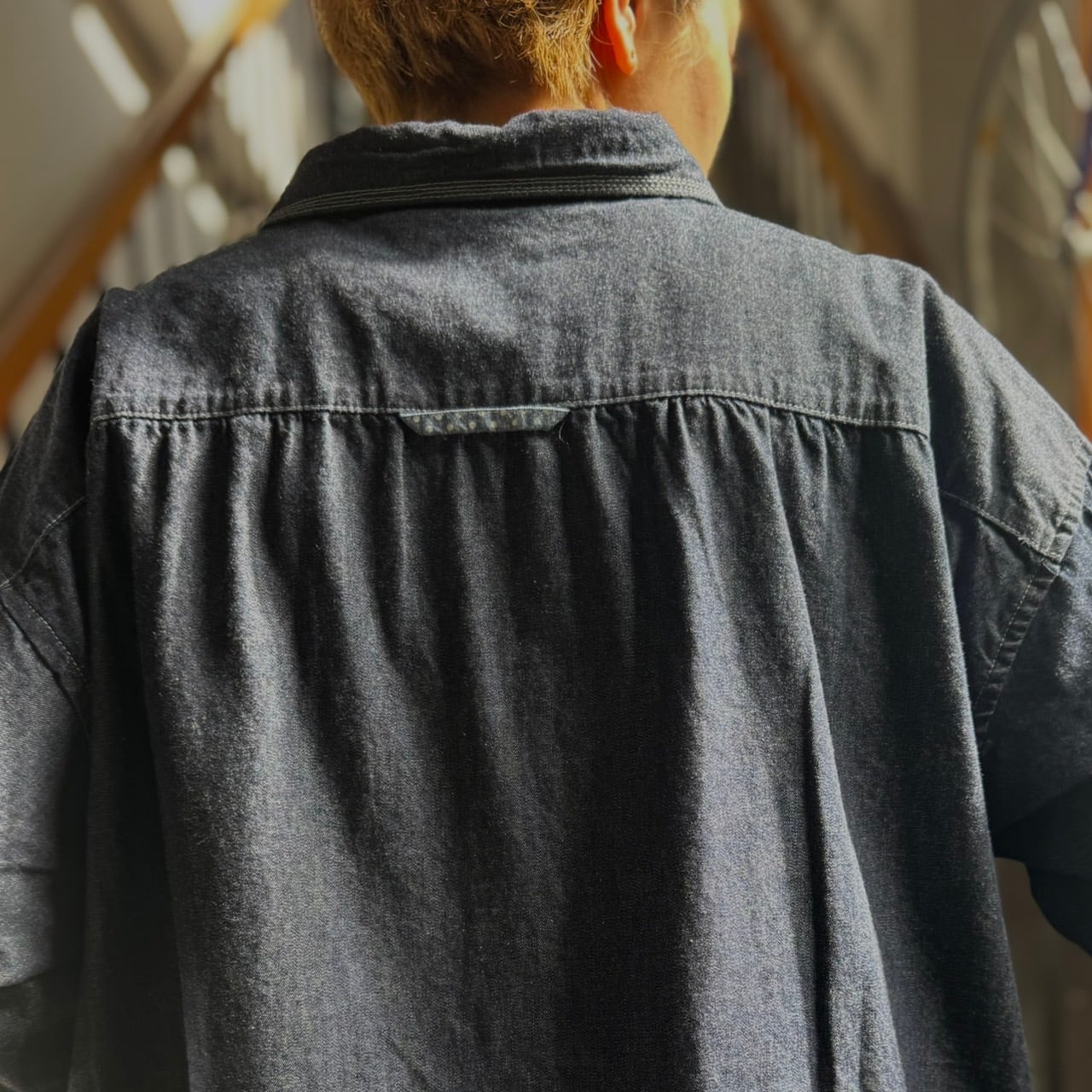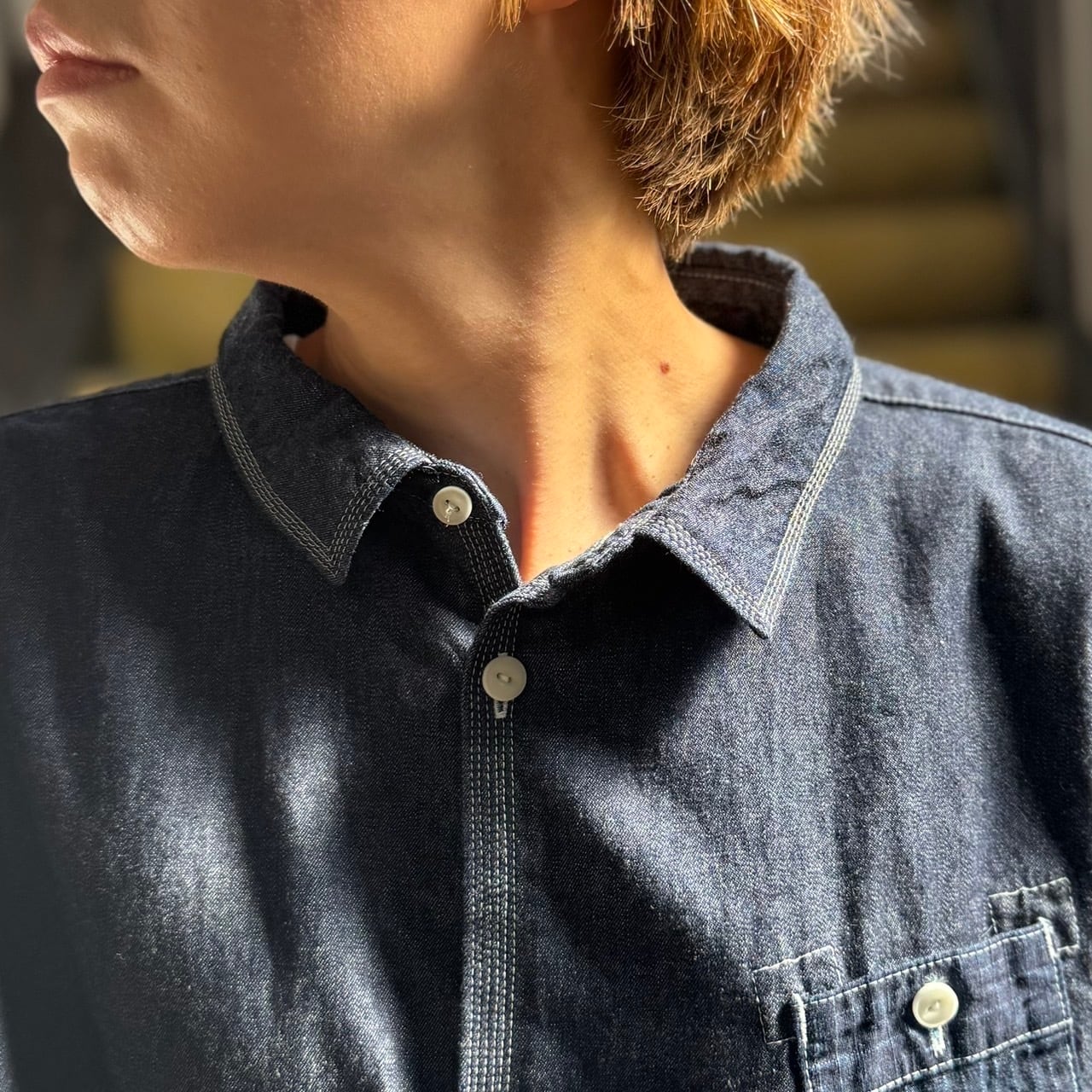 所々素材の違うリップストップ生地やヘリンボーン生地を貼り合わせる事で同じインディゴでも