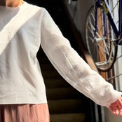 糸自体に収縮性があり、形状安定が特徴的なPBTポリエステルを使用したニットプルオーバー。