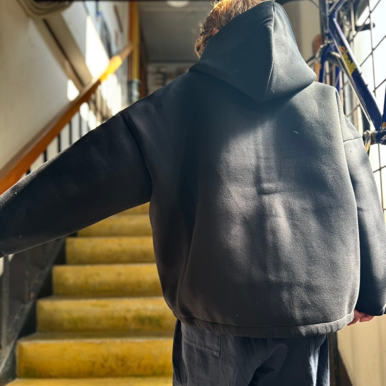 ハリ感と軽さが特徴的なダンボールニット素材によるフードジャケット✨