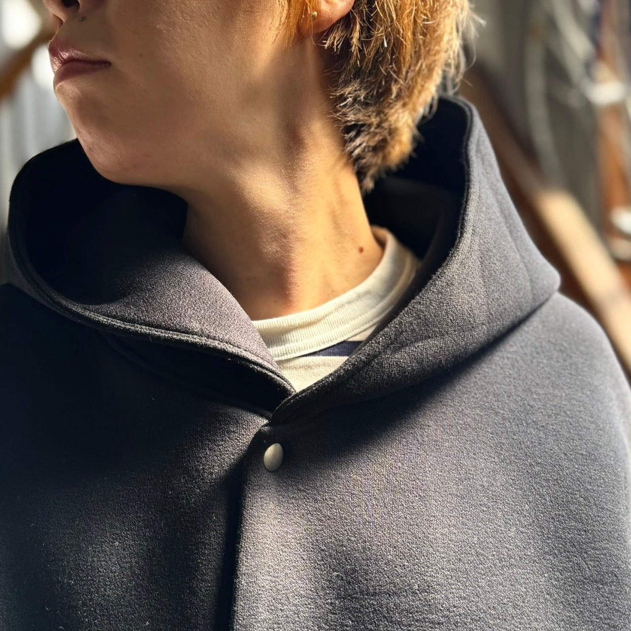 ハリ感のある生地はシワにもなりにくく、フードのボリュームさもあって
