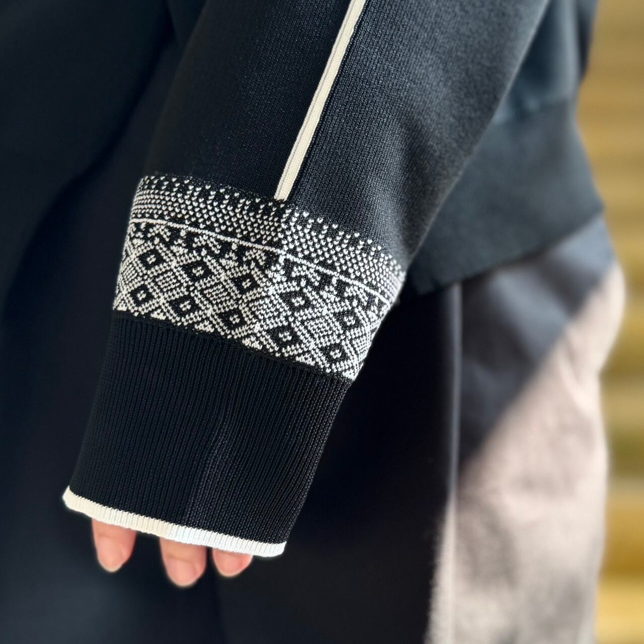 袖口にジャガード柄を、袖山と、袖端にかけてラインを足した