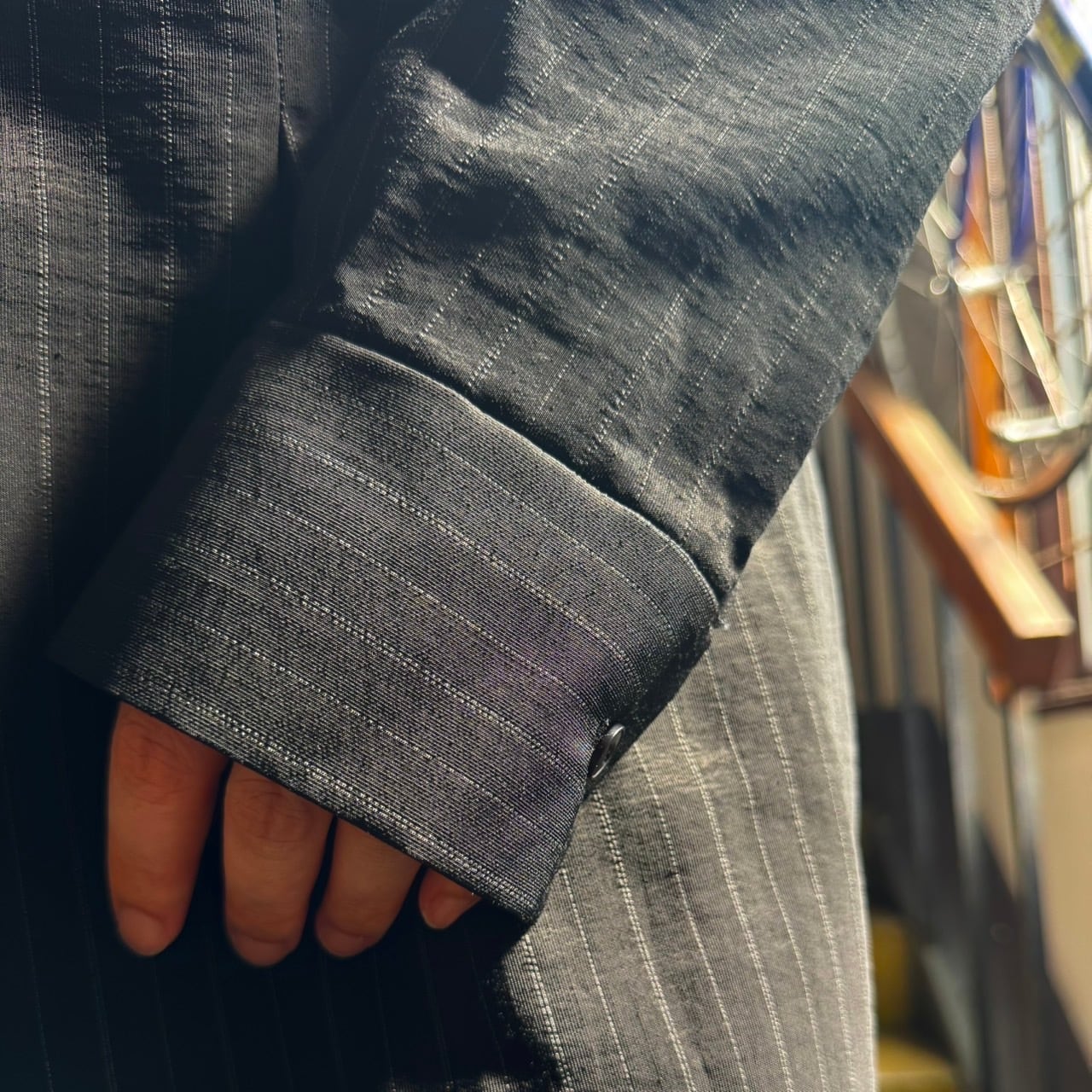 去年の秋冬でも展開のあった別注ストライプの柄を