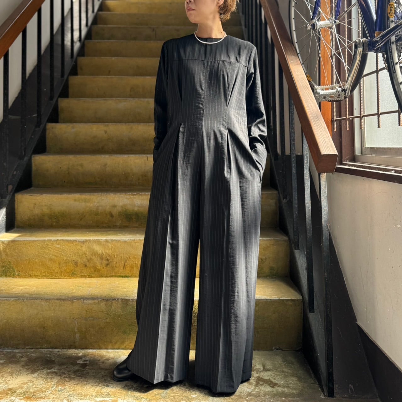 iki - レーヨンウールナイロン平織り ストライプオールインワン