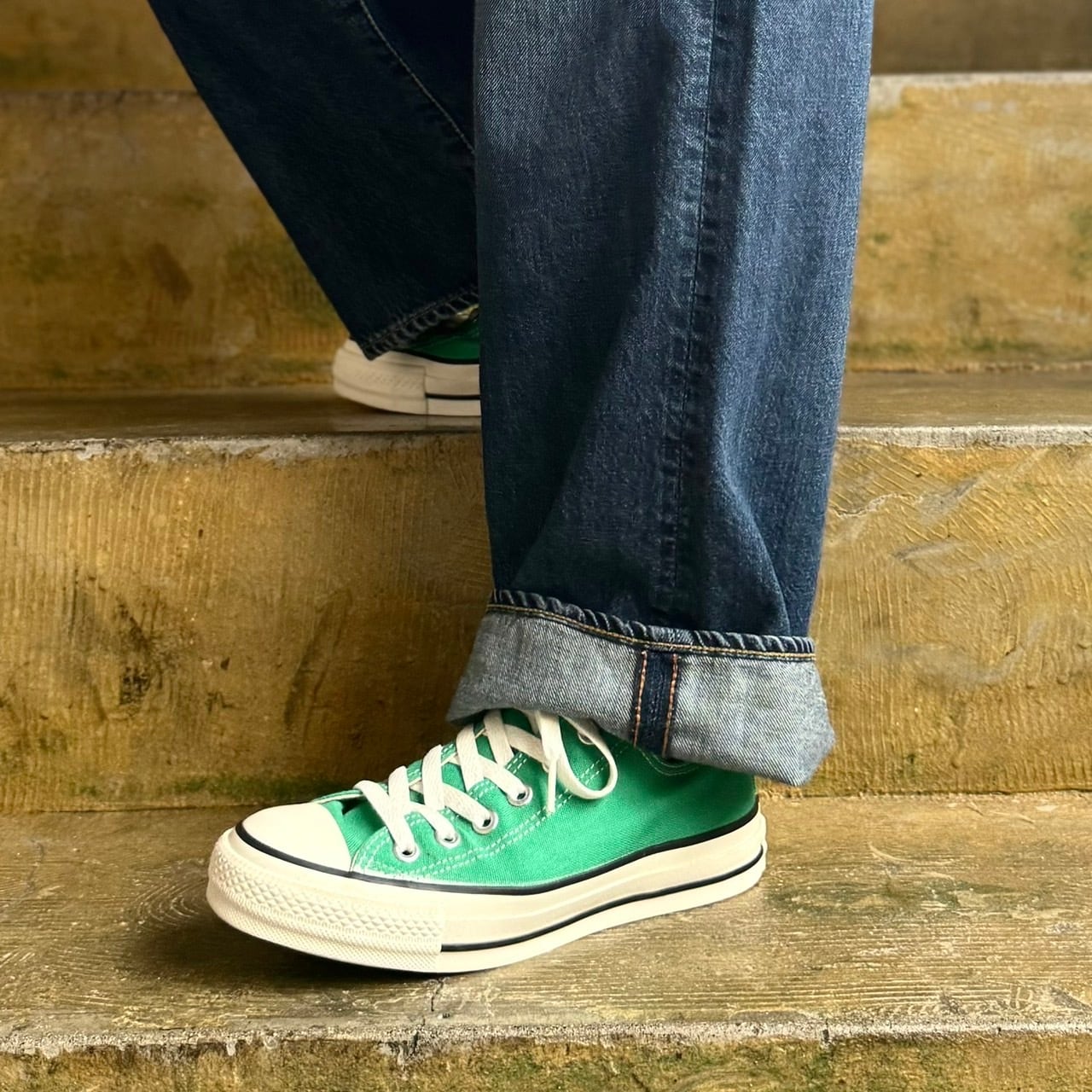 ほどよいムラ感が特徴で穿きこむほどに味わいある色落ち感を楽しめます。