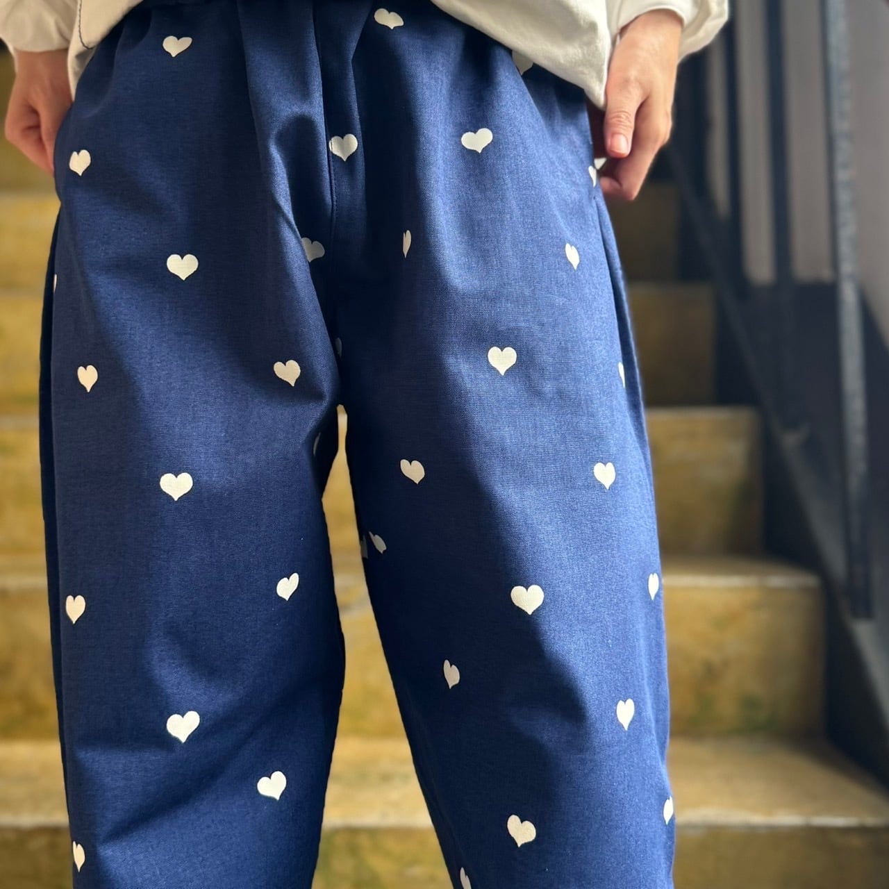 隙間を広くとったシンプルトーンなハート柄のパンツです。