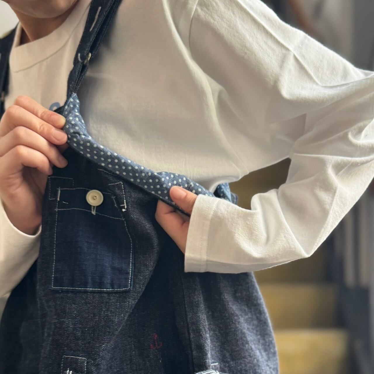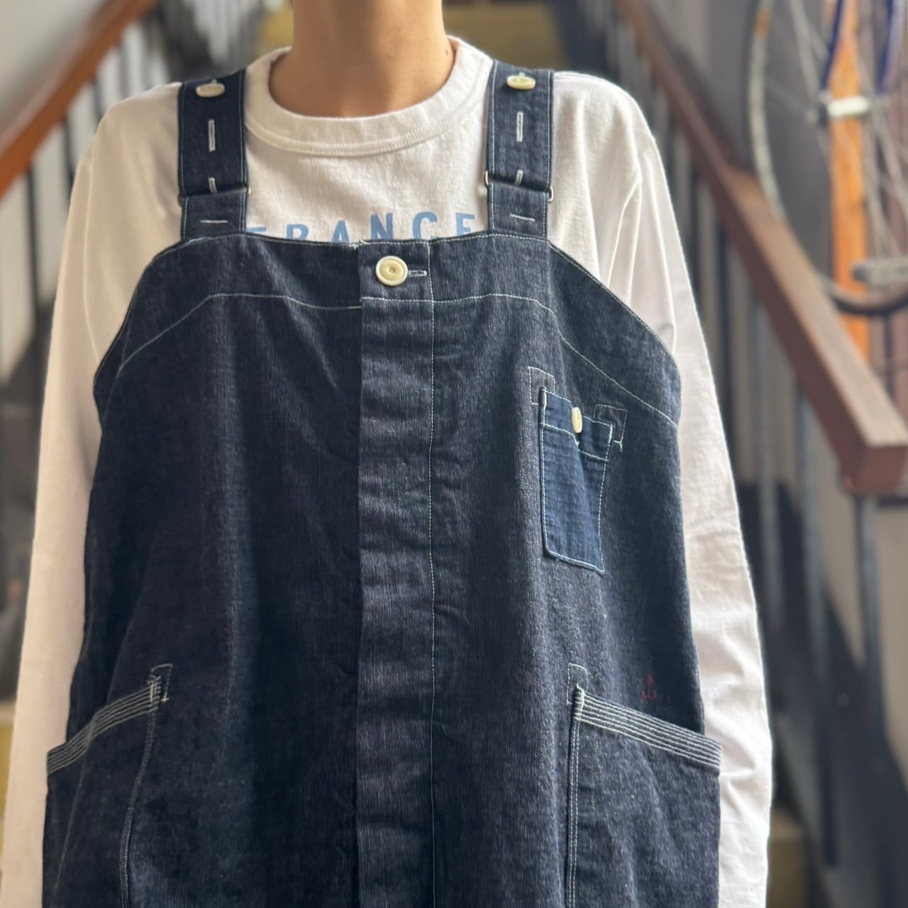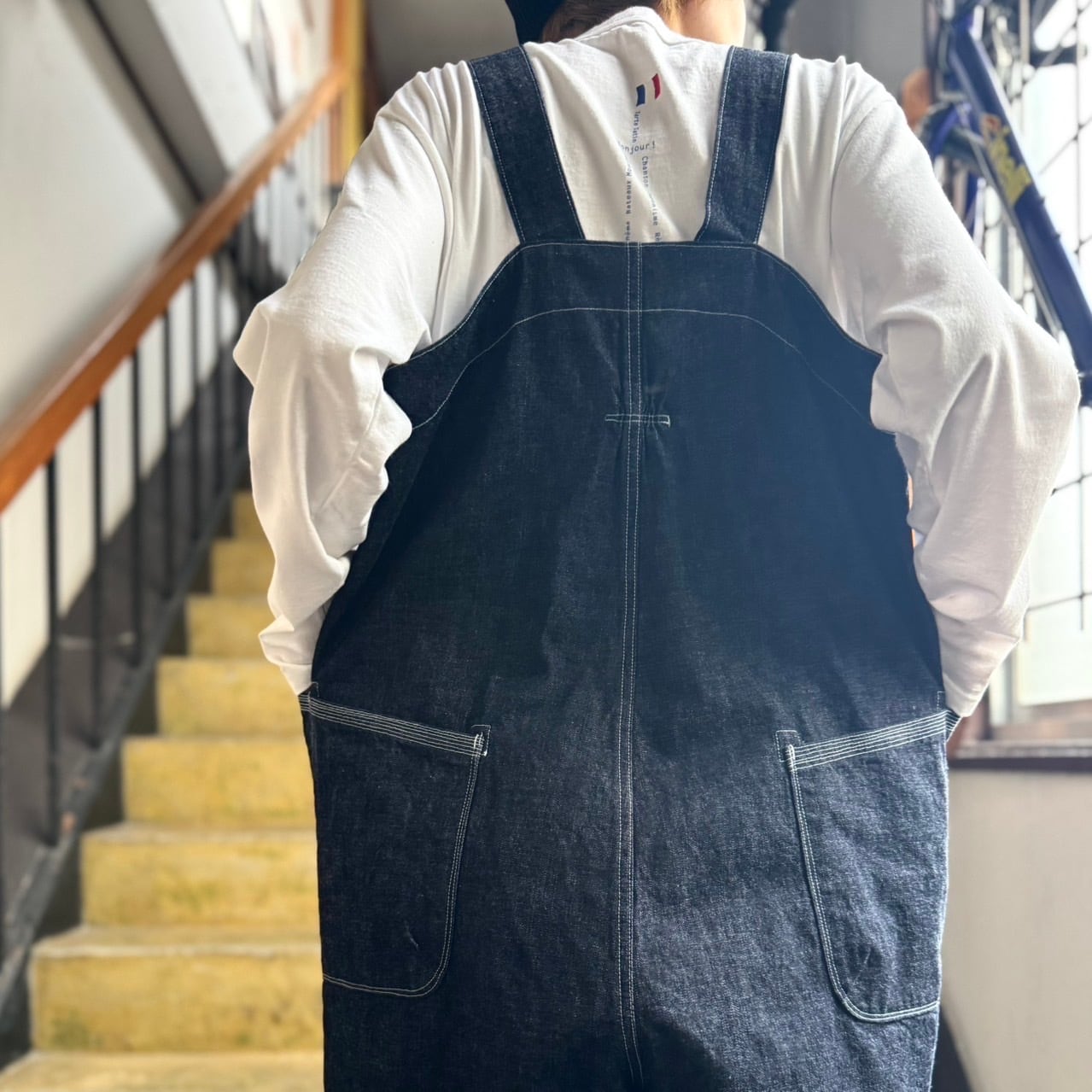 薄すぎず厚手すぎない使い勝手の良いしっかりめなデニムの9.5オンスデニムのサロペットです。