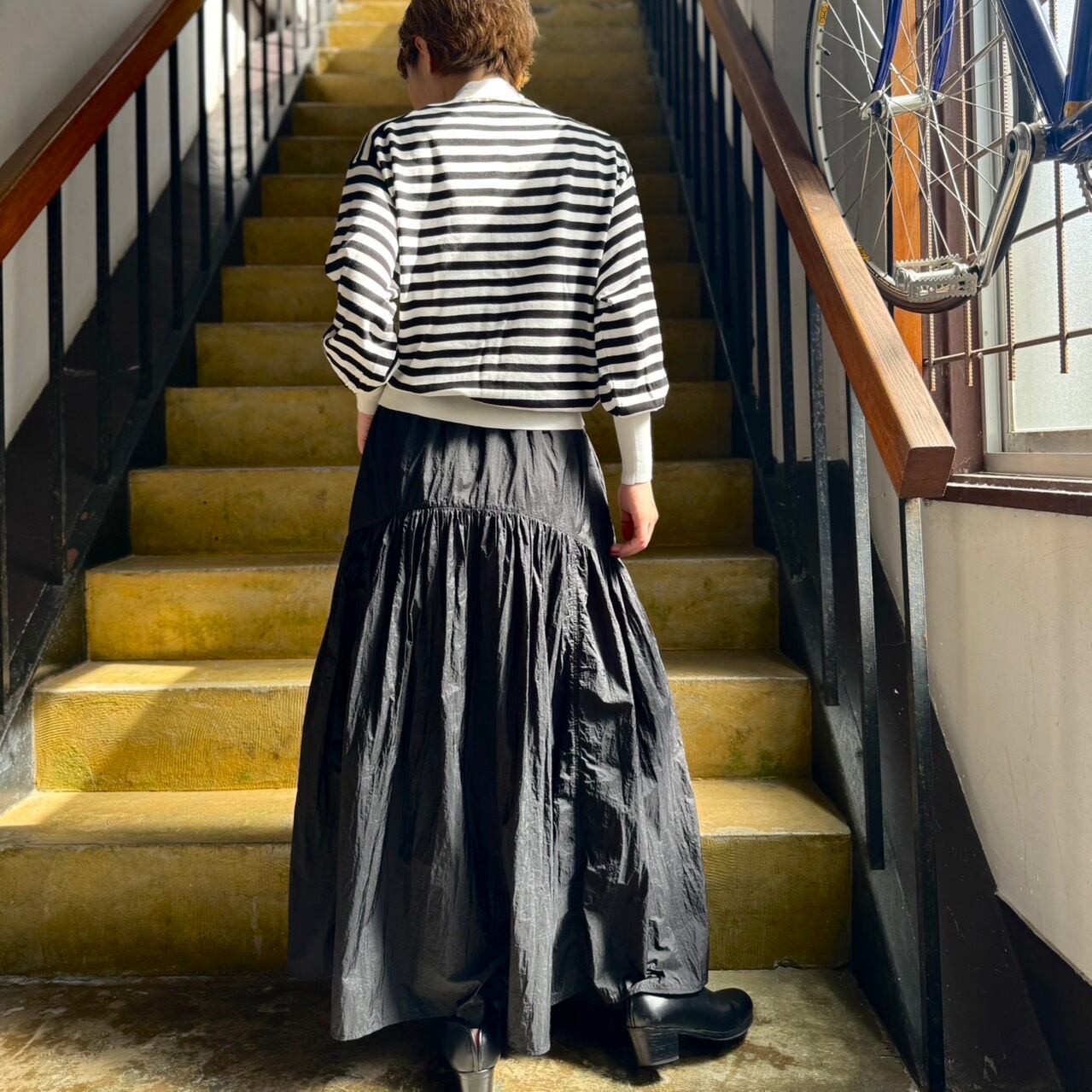 手間ひまかけて作られた生地のティアード感のあるスカートです。