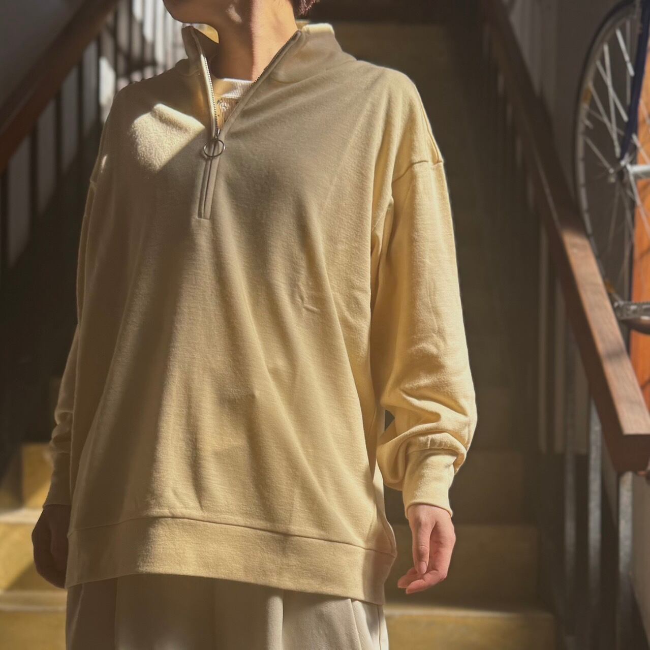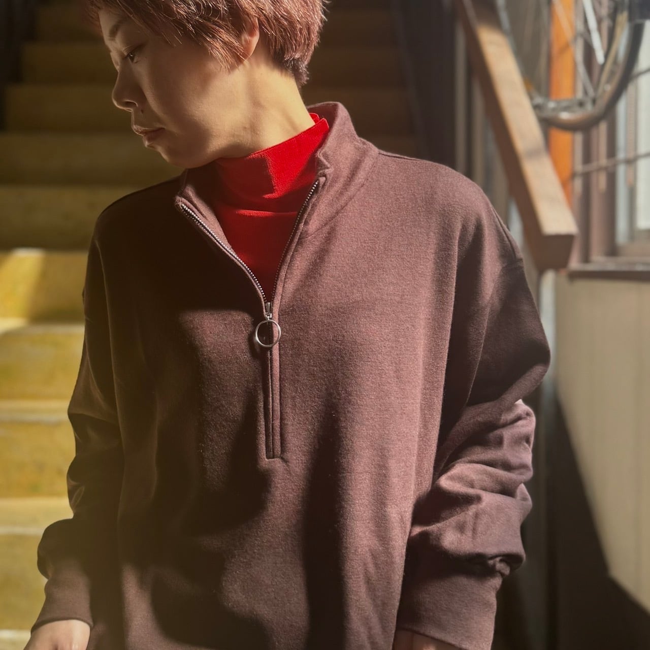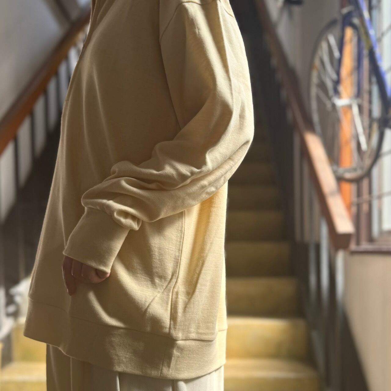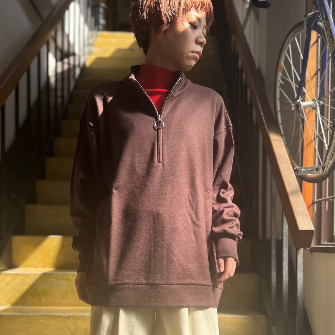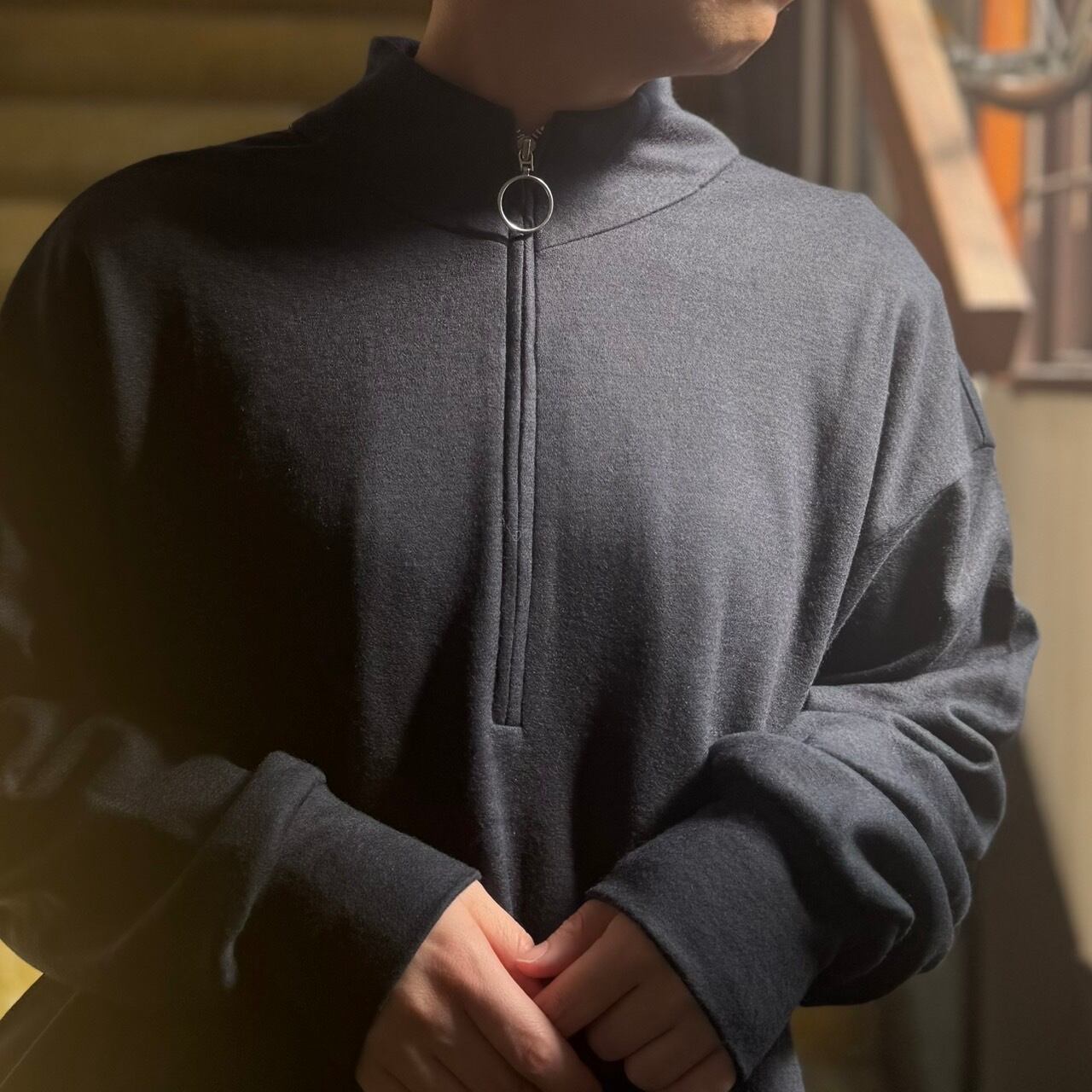 スーパー100の高品質なウールで編み立てたウール天竺の生地を使ったジッププルオーバー。