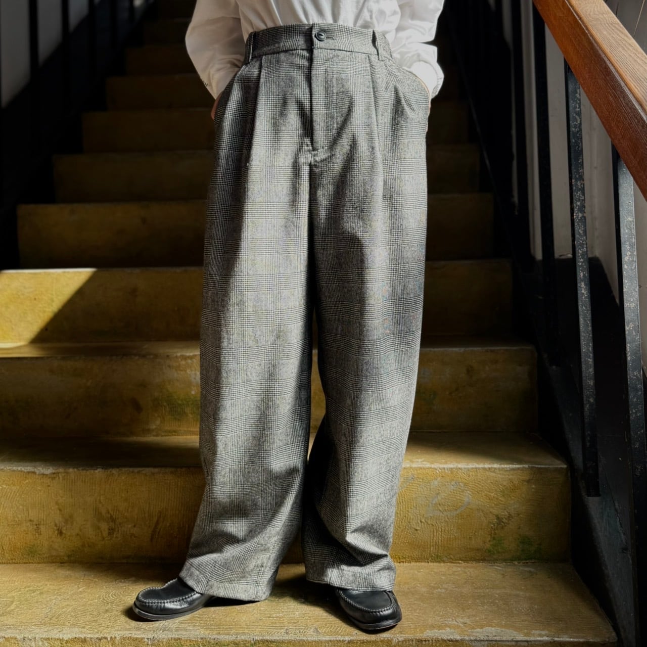 yuni - ウォッシャブルウール グレンチェックワイドパンツ