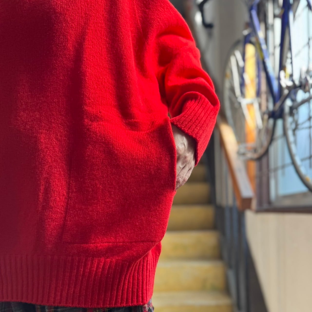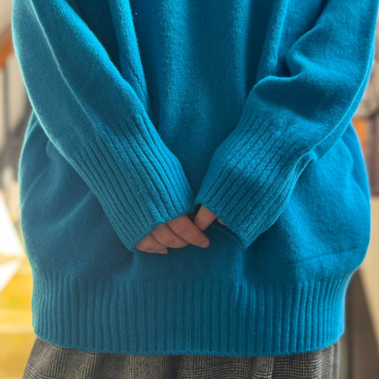 ポッケ付きでカジュアルに楽しめるウールカシミアのニット物♪