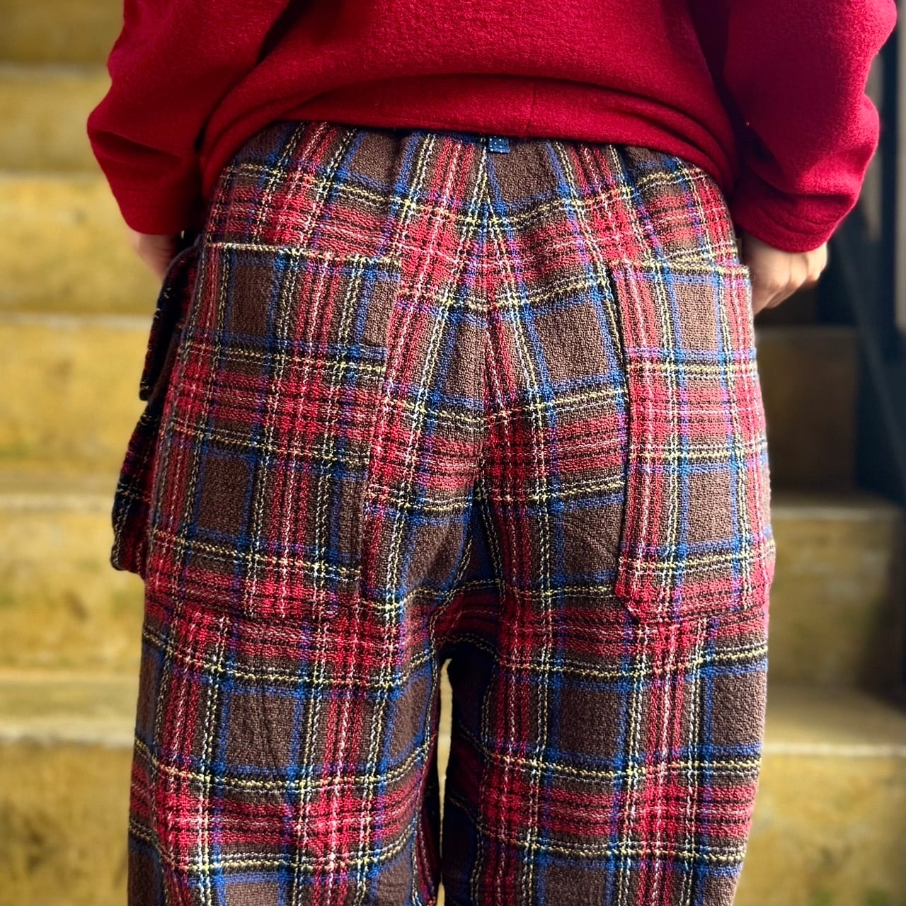 快晴堂 - Girl’sタータンチェック・リラクシンWork/アルピーノポケットパンツ(ココアタータン)