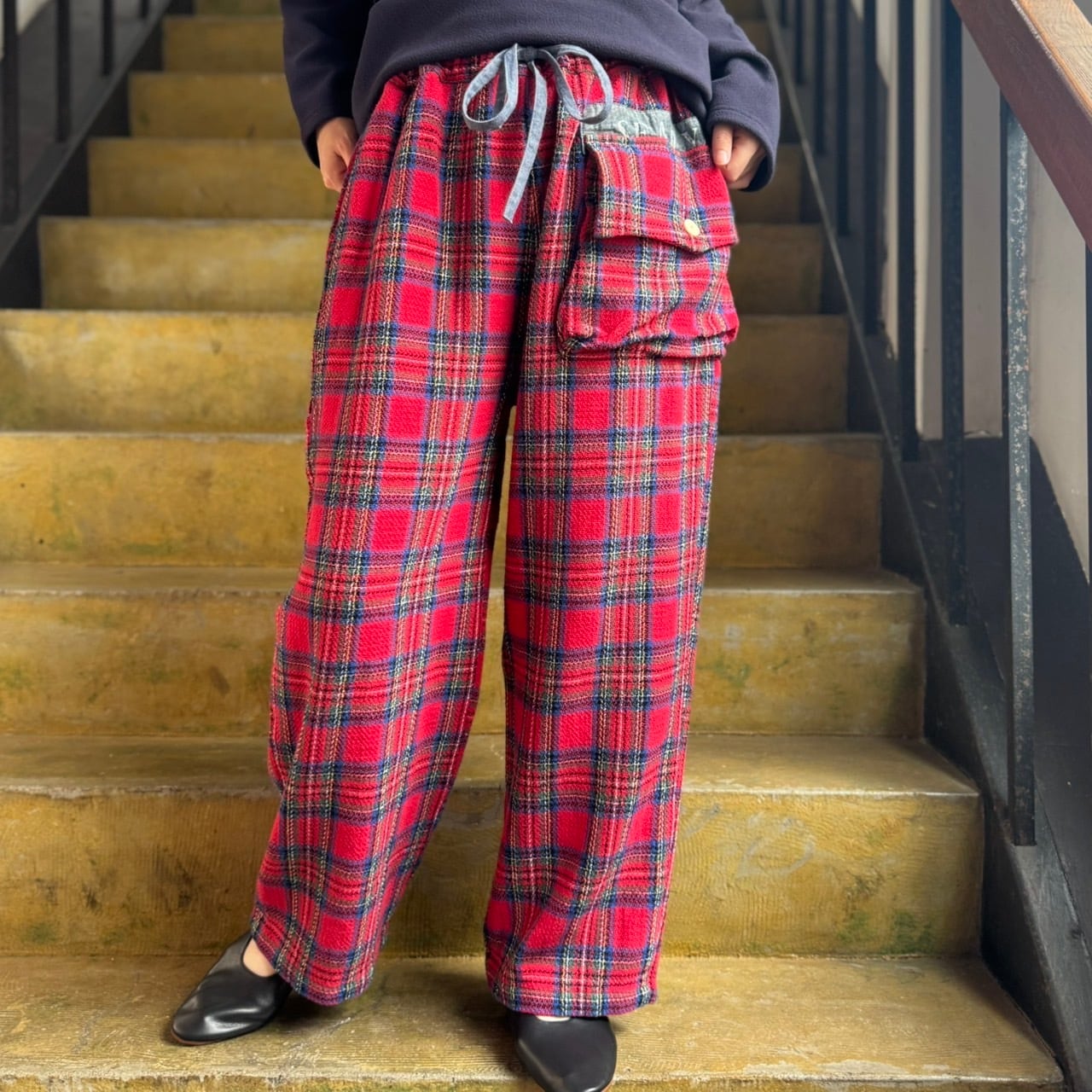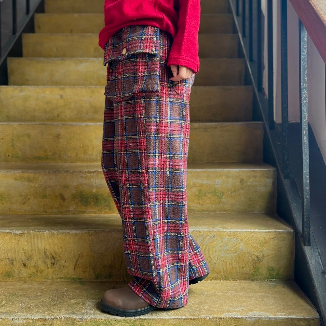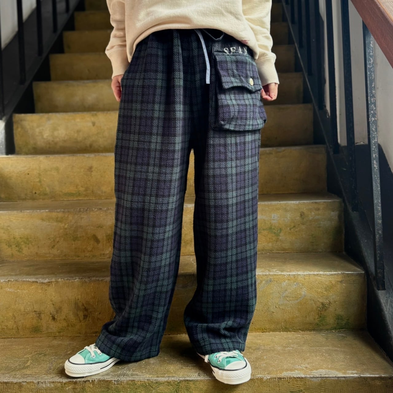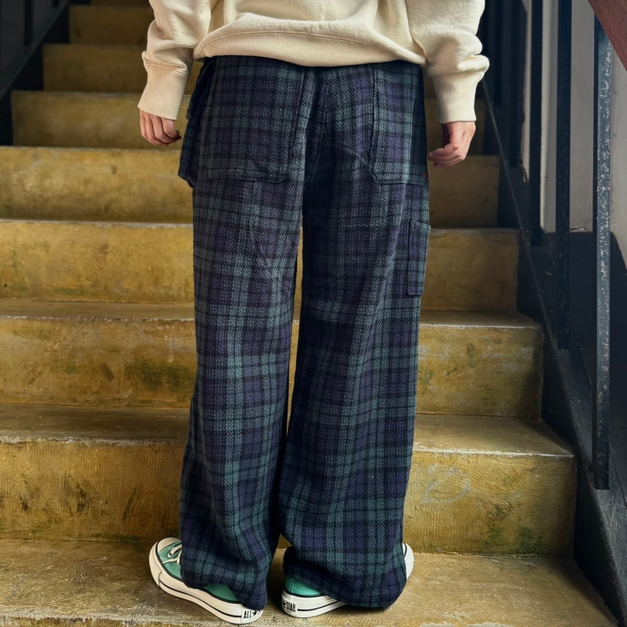 快晴堂 - Girl’sタータンチェック・リラクシンWork/アルピーノポケットパンツ(ブラックウォッチ)