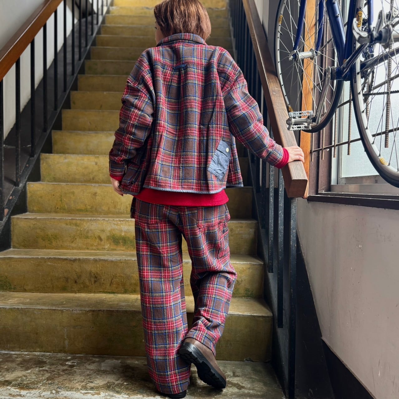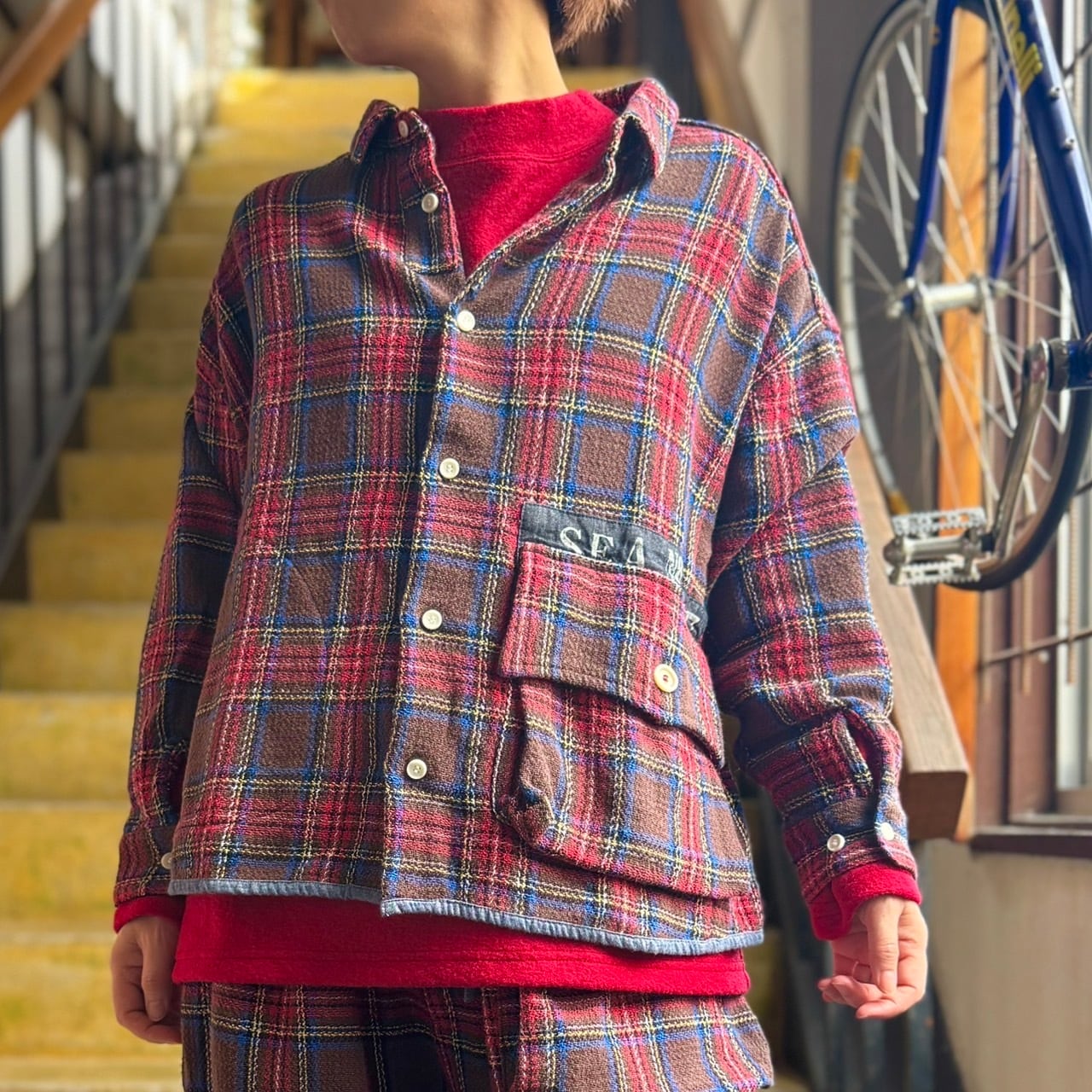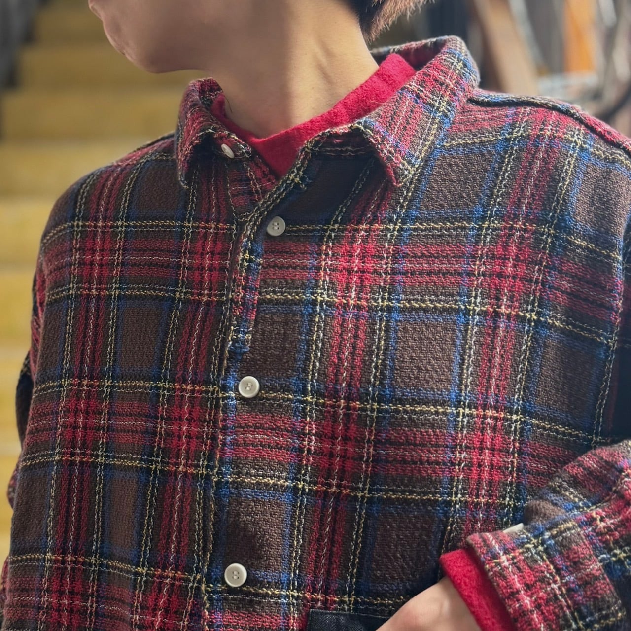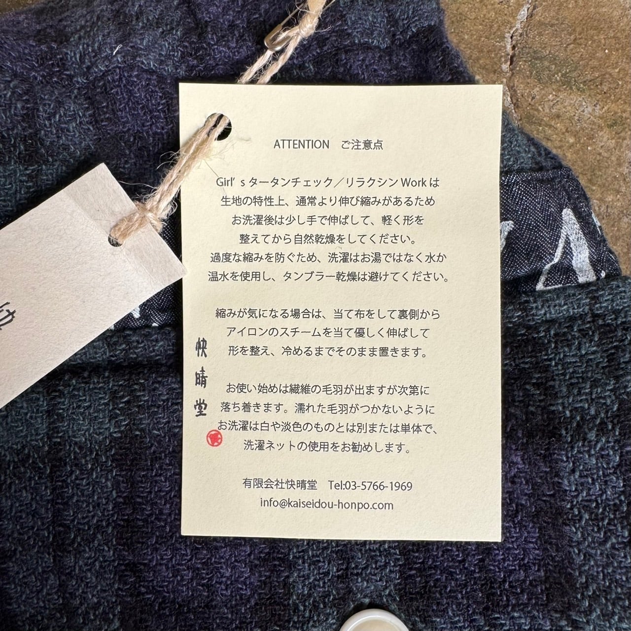 快晴堂 - Girl’sタータンチェック・リラクシンWork/アルピーノポケット羽織りシャツ(ココアタータン)