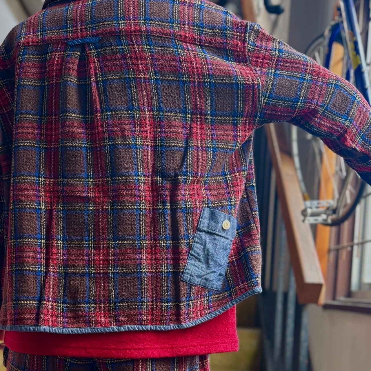 力布がこのシリーズのデザインがまたアクセント感がある羽織りシャツとなっています。