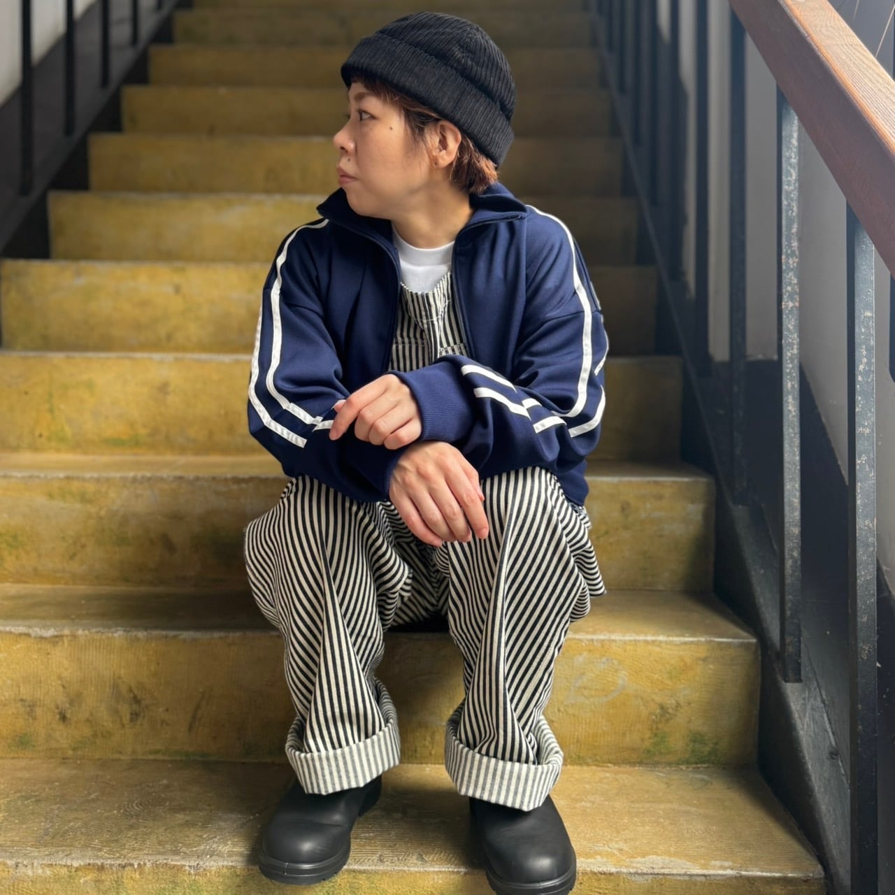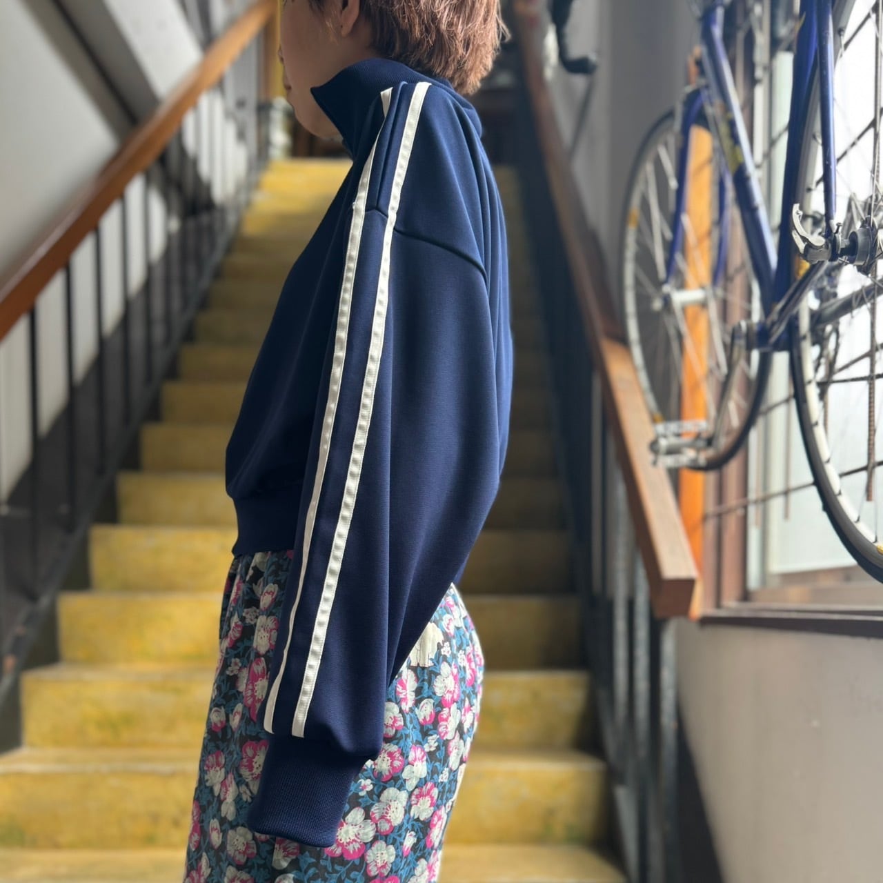 I am I in fact… - ジャージーショートブルゾン(ネイビー)