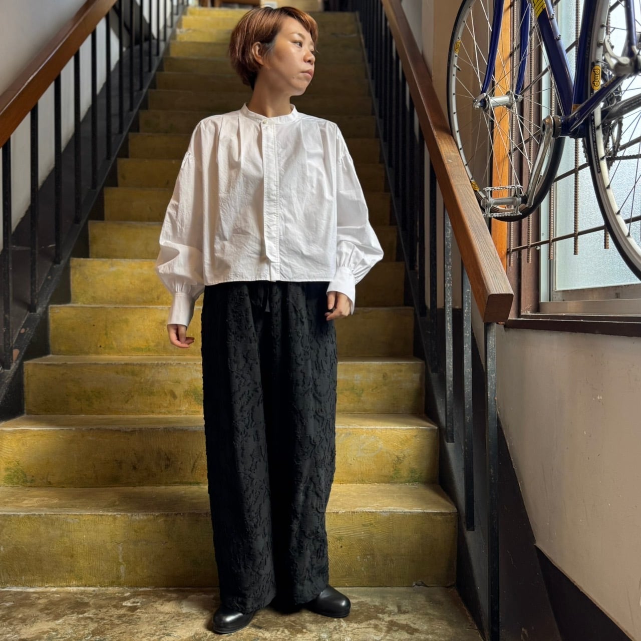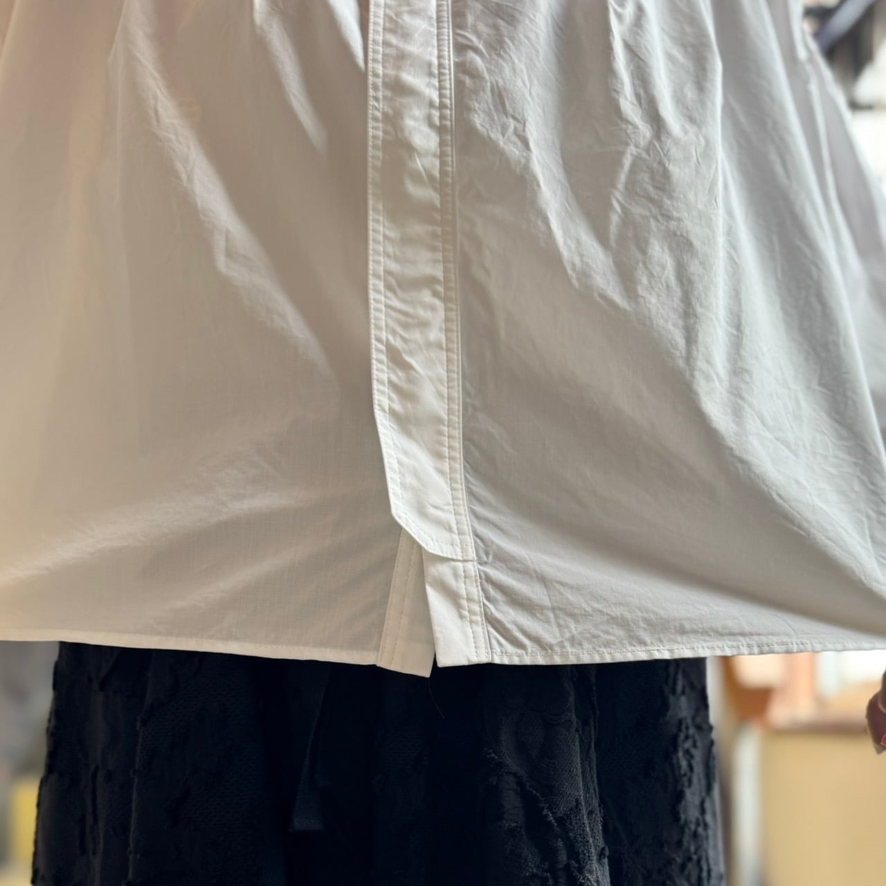 ブラウスには珍しい前立てタブの重なりもポイントに!