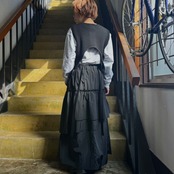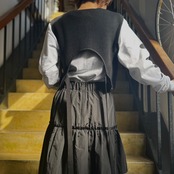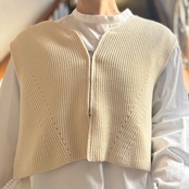後ろ裾のホールデザインと長めな紐で遊び心をプラスきたショート丈のベストです。