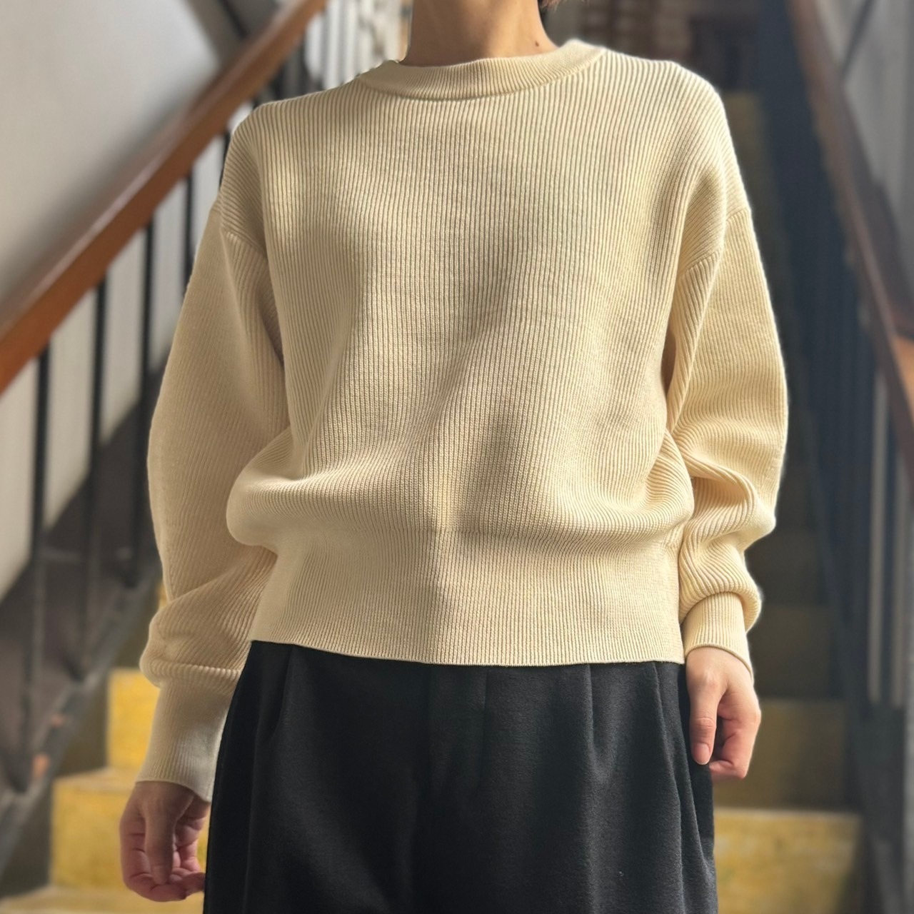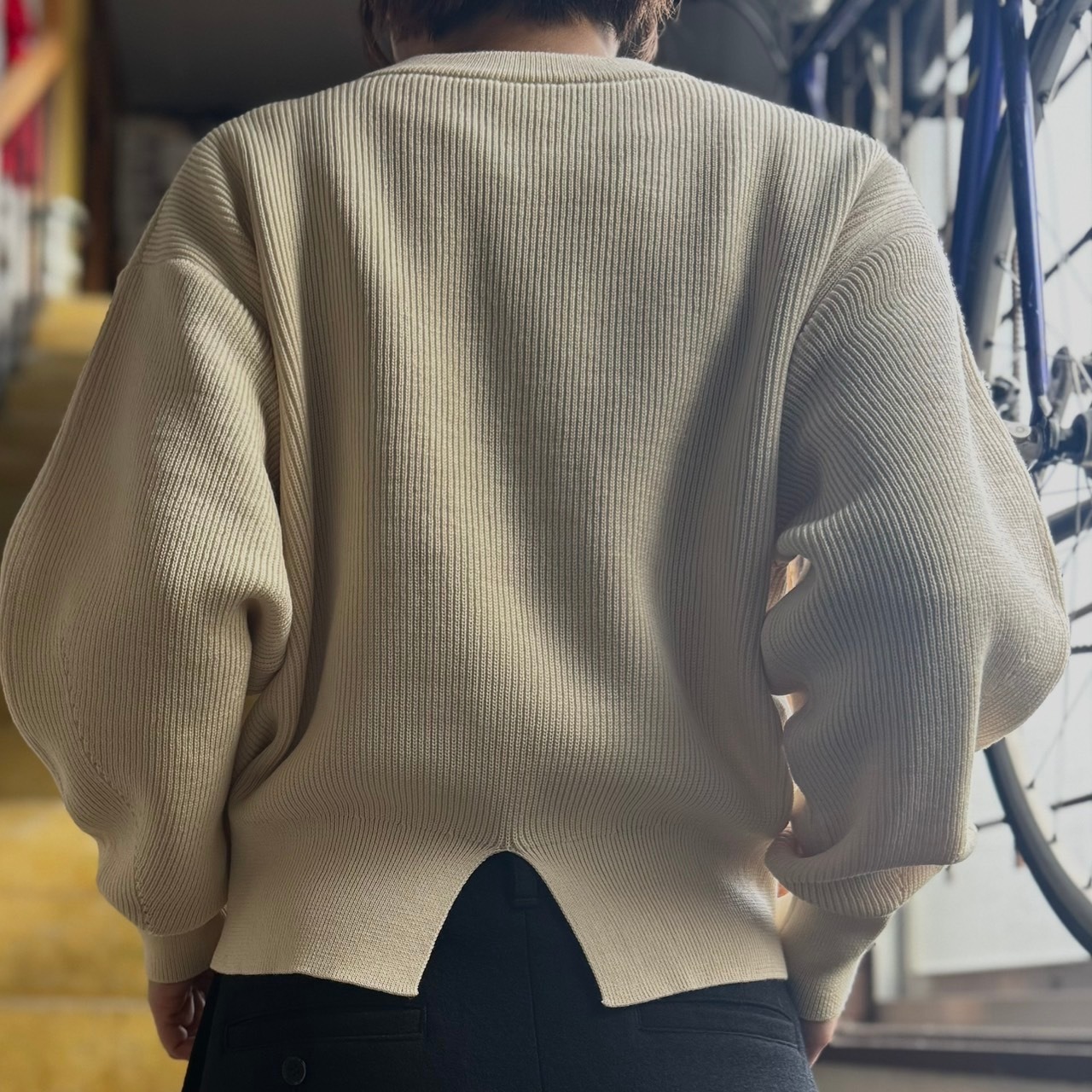 後ろ裾のリブスリットがさりげなく入ったikiらしいニットに仕上がっています。