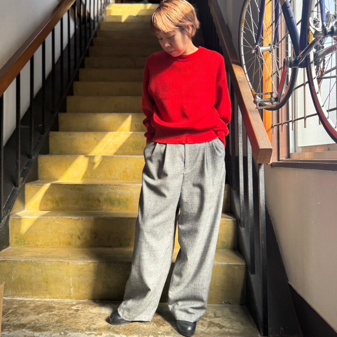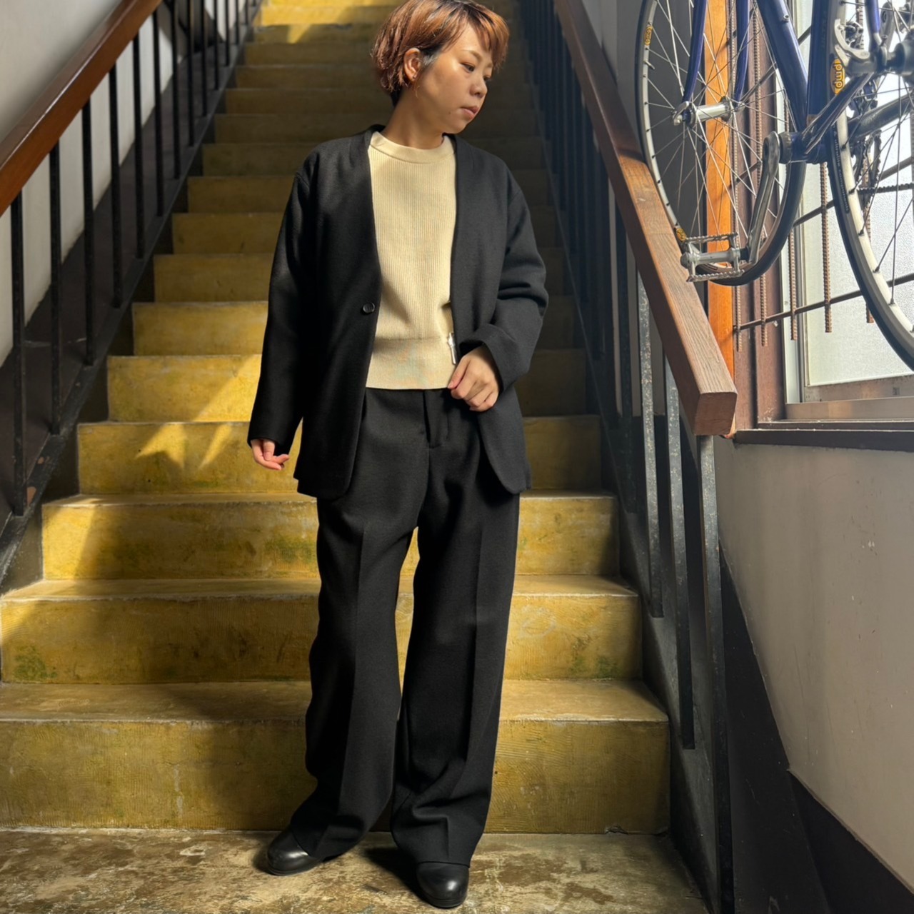 ワイドパンツにとても相性の良いショート丈のデザインです。