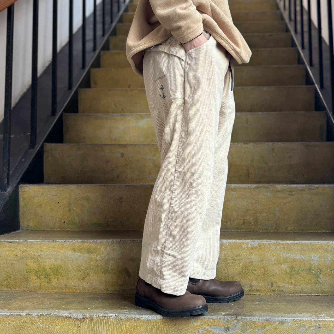 コットンにリネンが40%入った珍しいコール天素材によるトラベラーズパンツです。