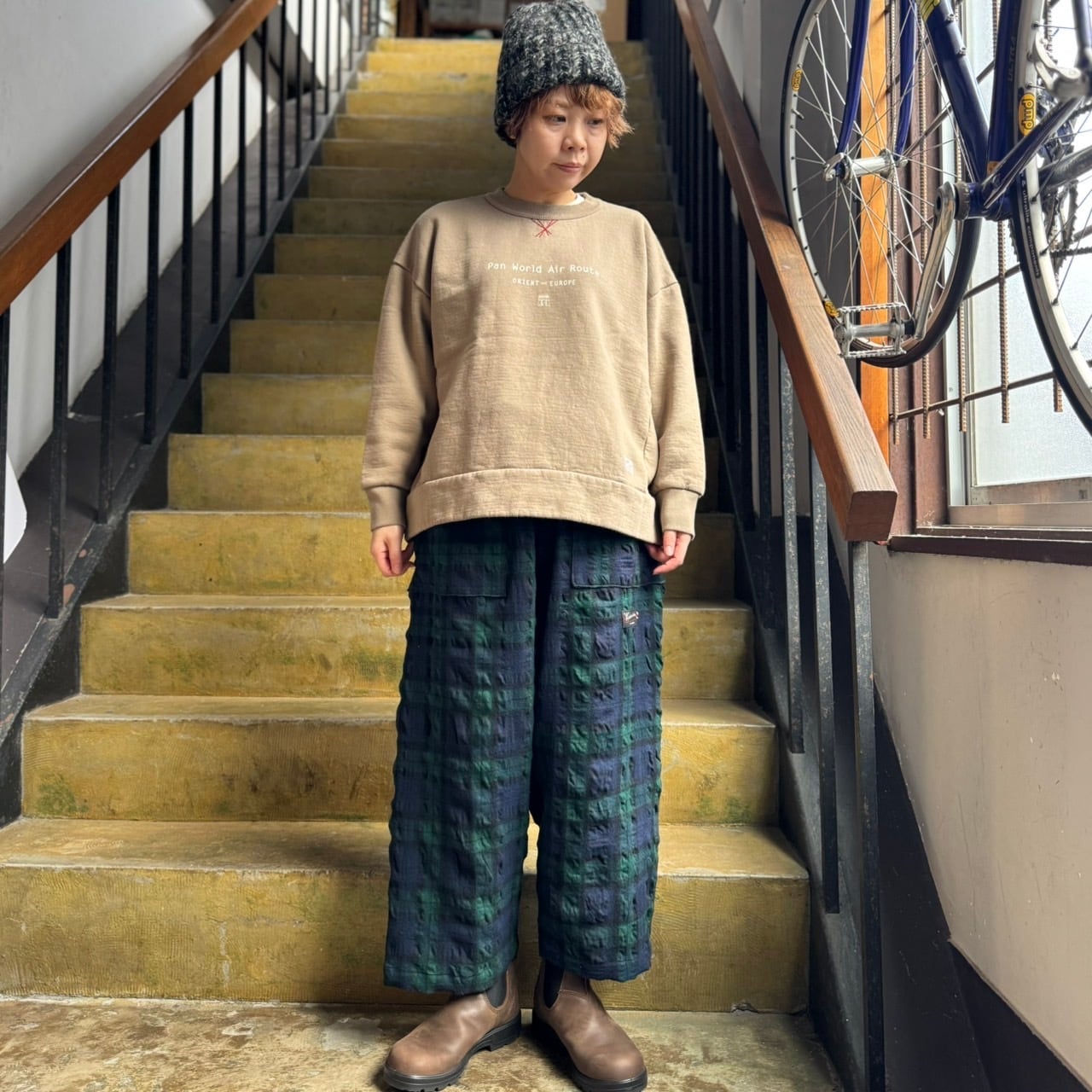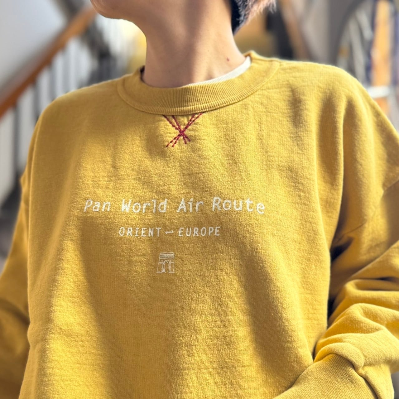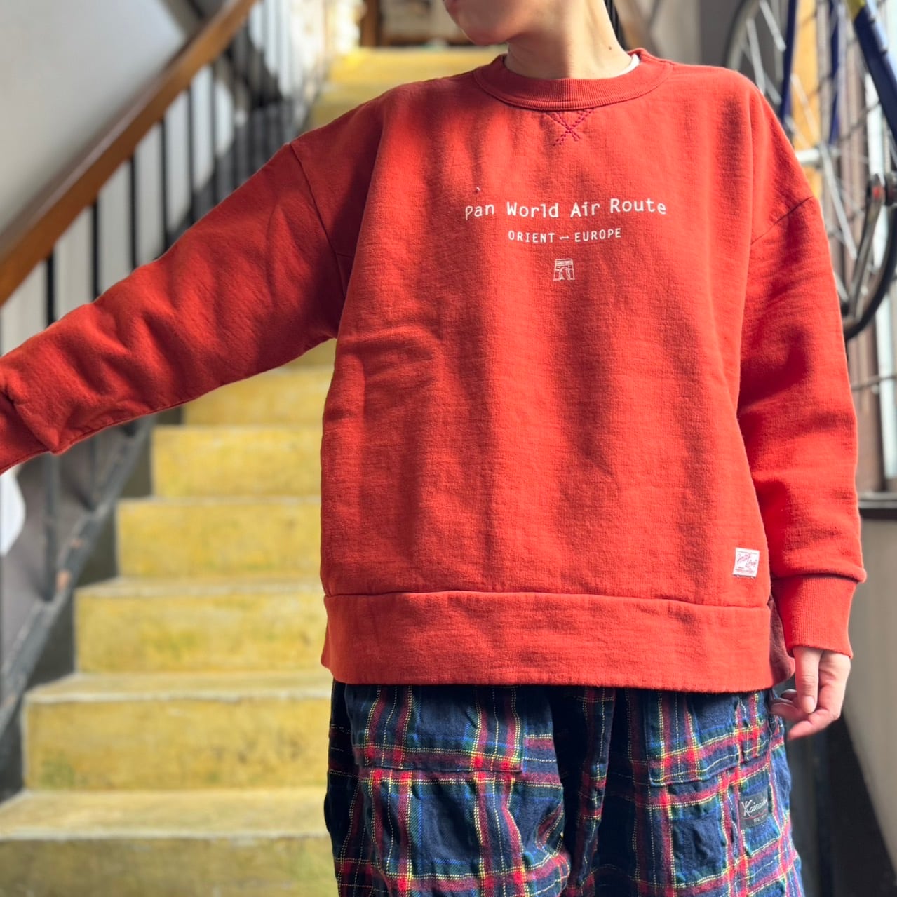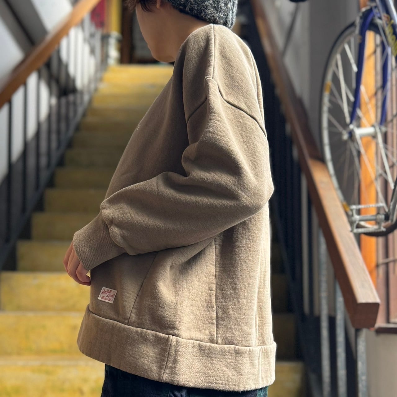 通常のトレーナーに比べて、身幅のゆとりと型落ちでワイドなシルエットで作ってあります。