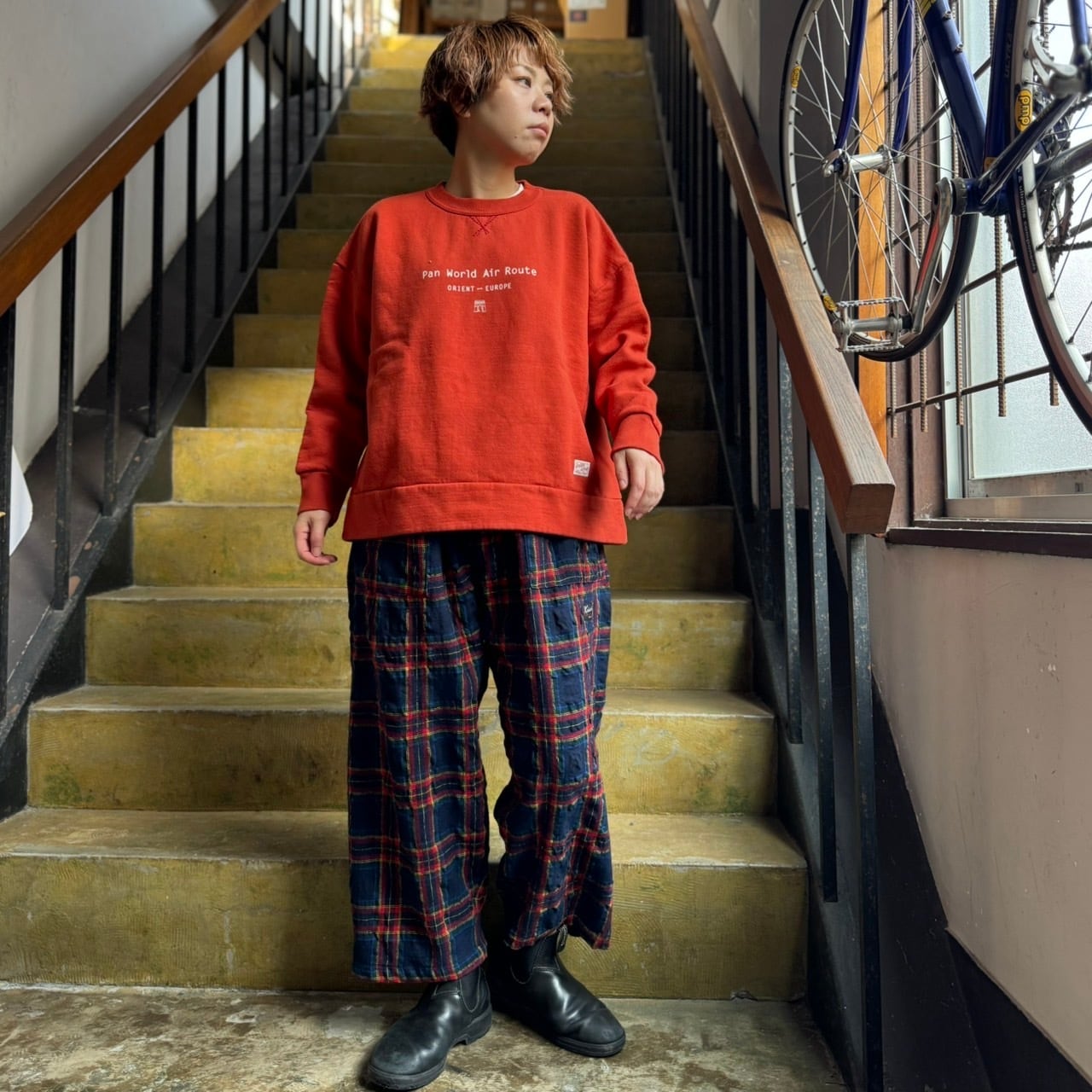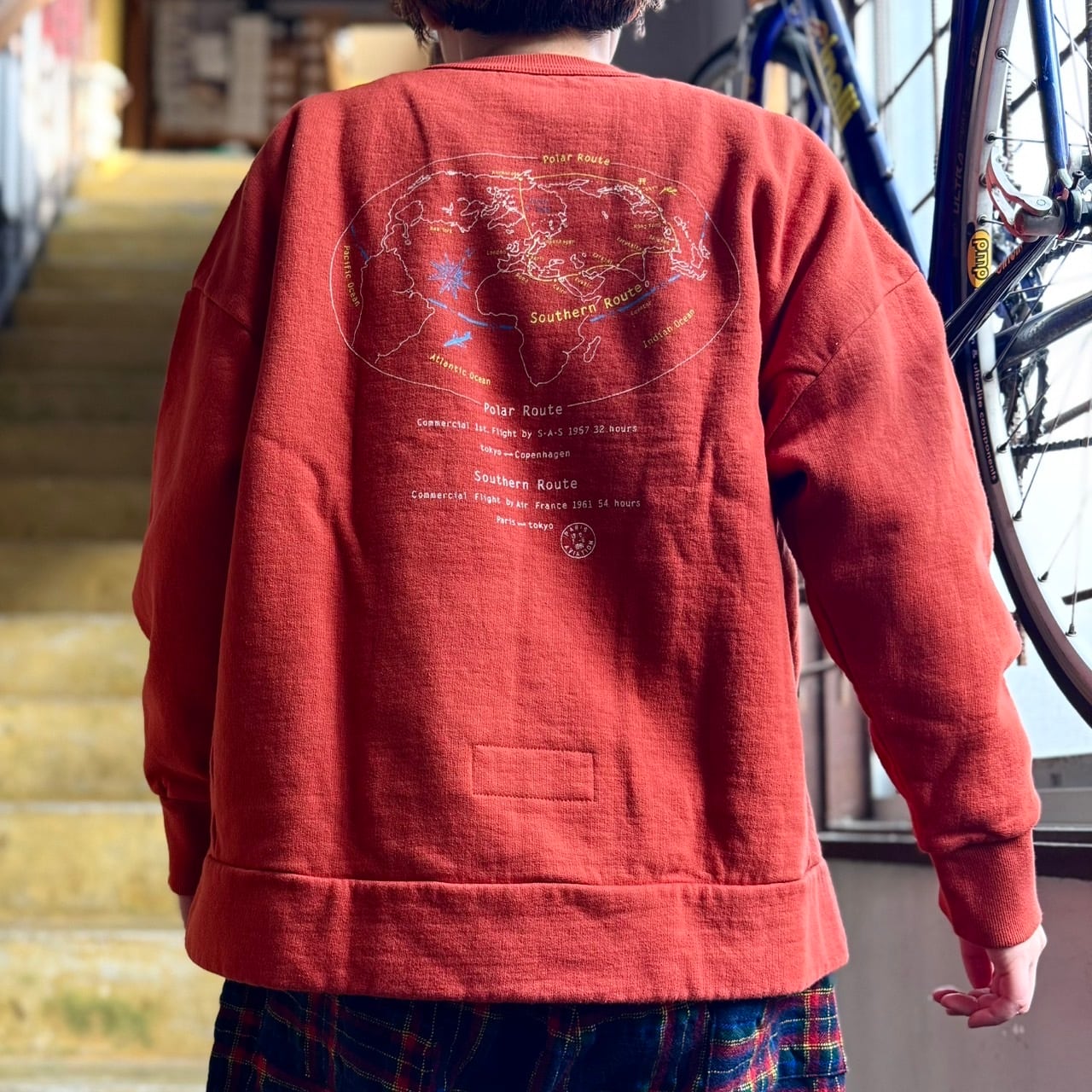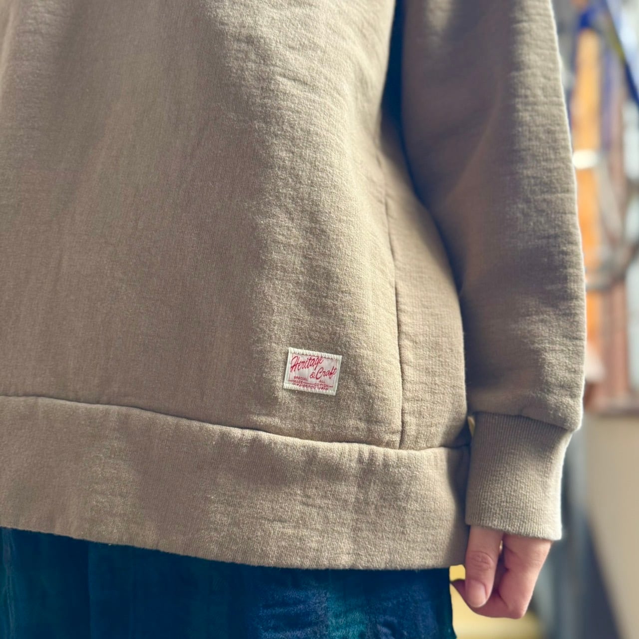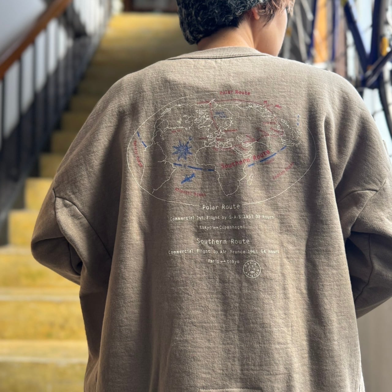 通常のトレーナーに比べて、身幅のゆとりと型落ちでワイドなシルエットで作ってあります。