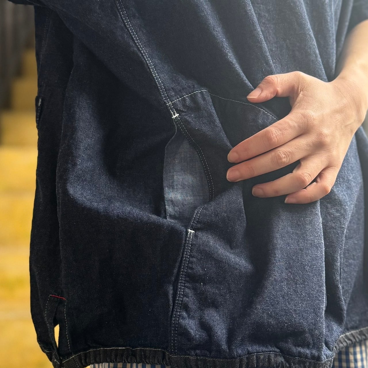 白くたくさん入ったステッチもデニムによく映えてアクセントに