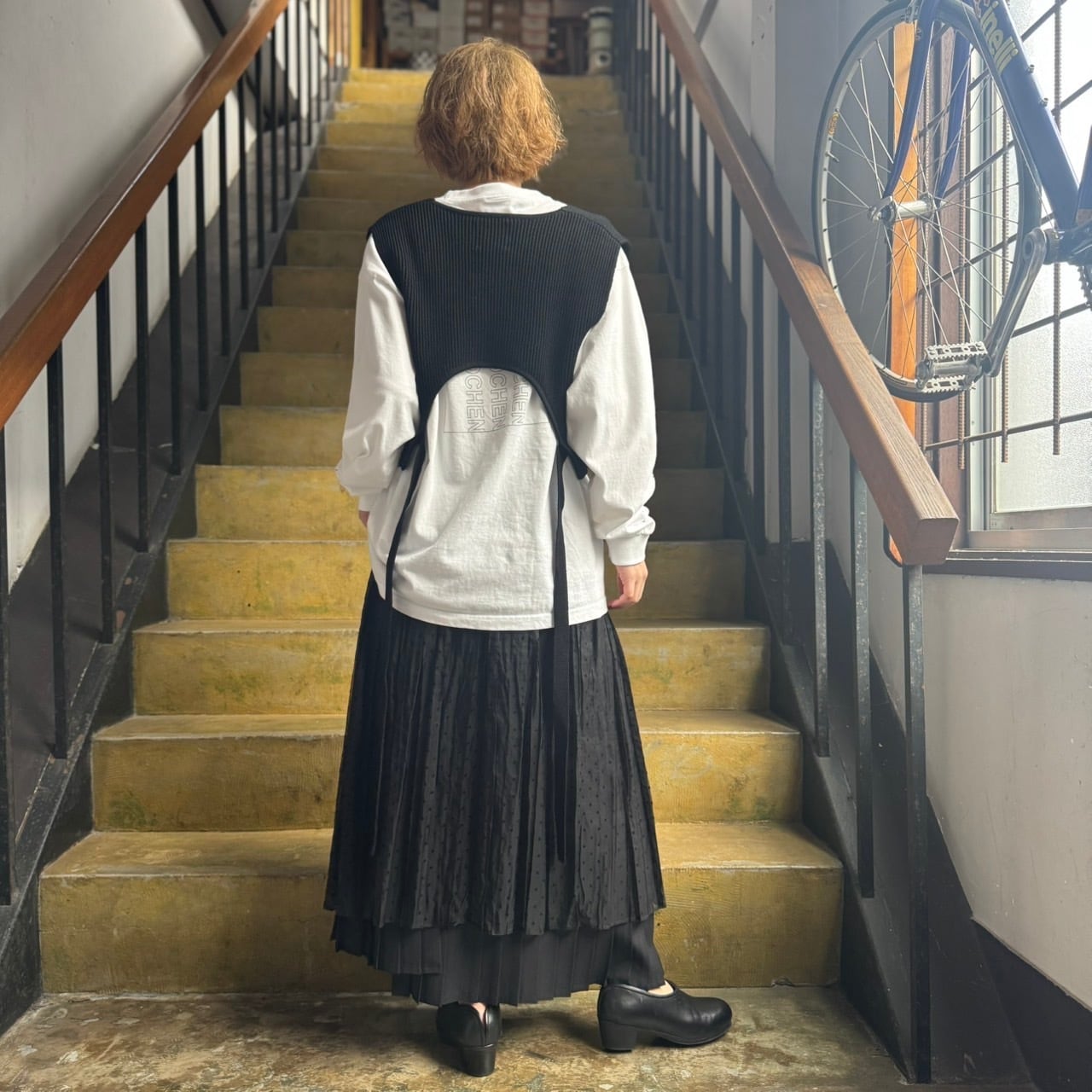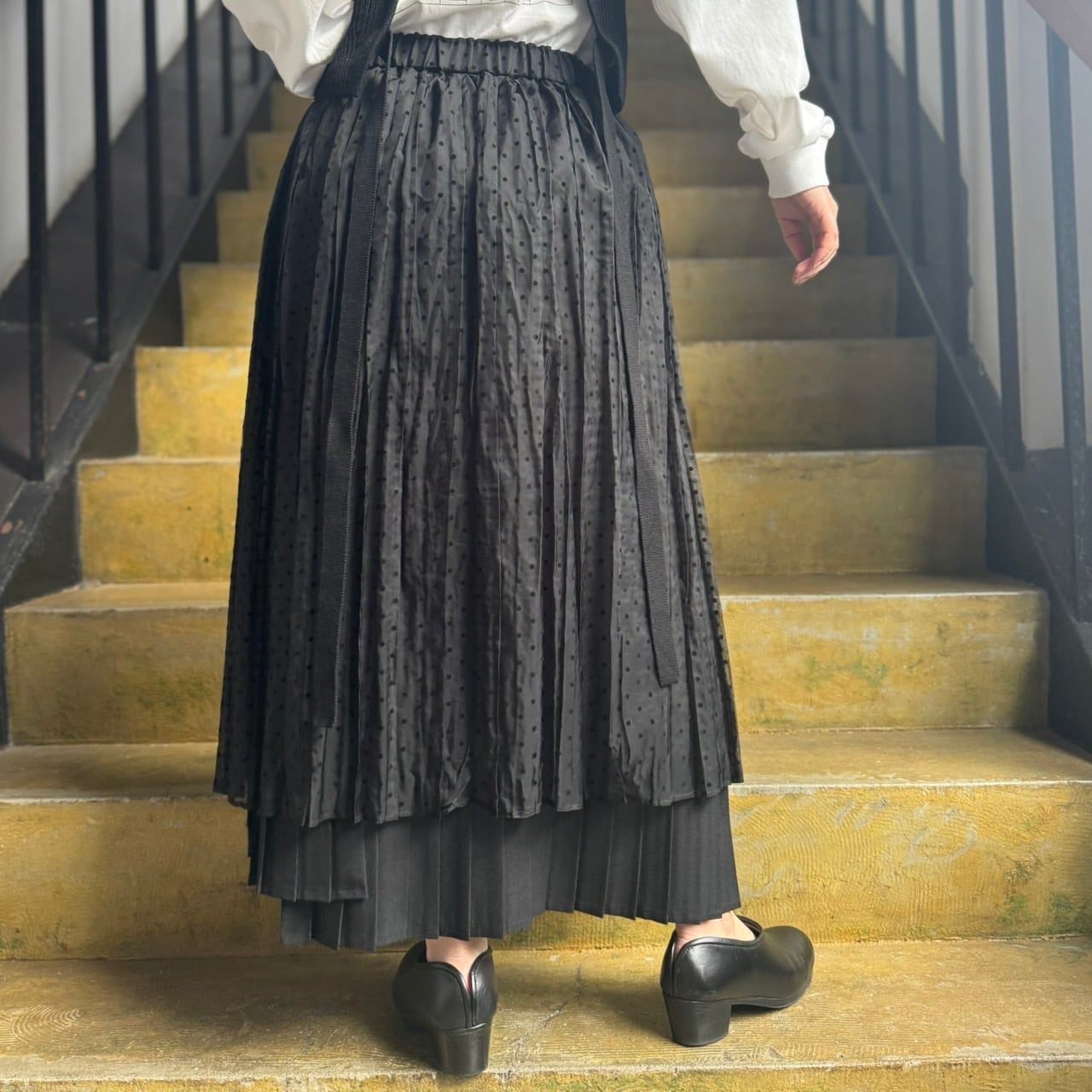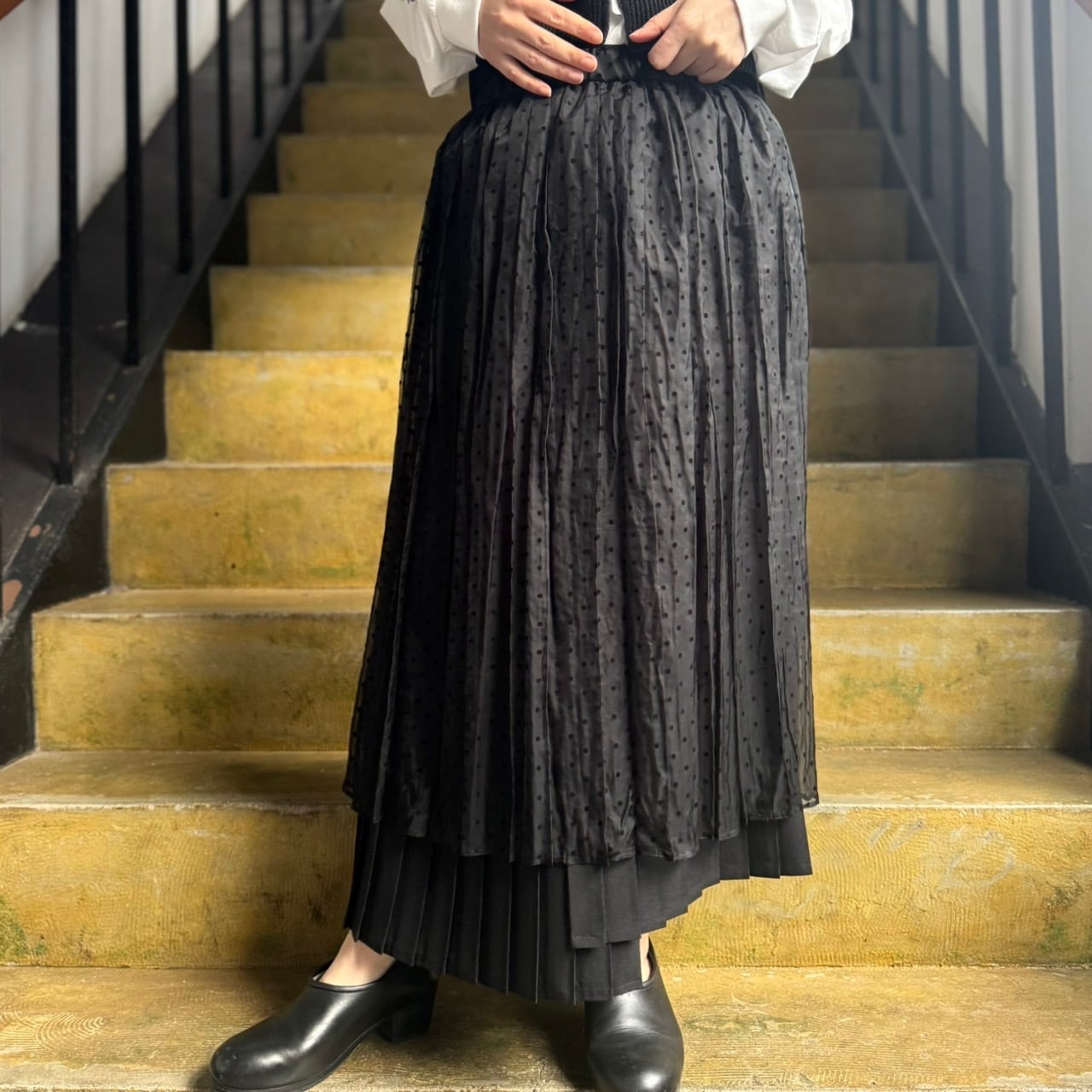 シアーなフロッキードットとドッキングしたひとクセ可愛いデザインスカートです。