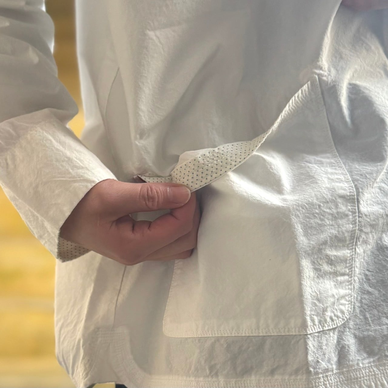お仕事着には白シャツは汚れるからと、仕事が終わって着替える服として